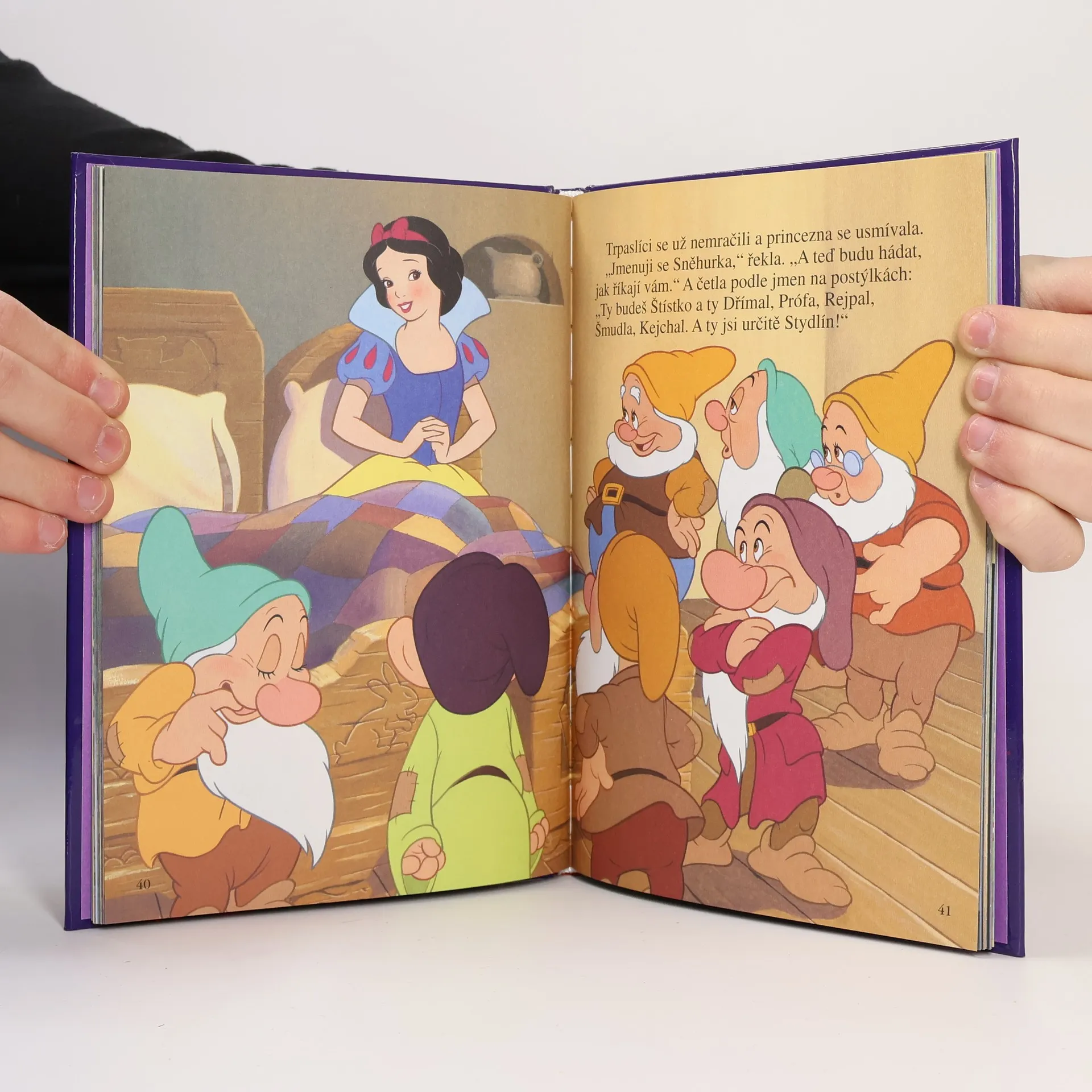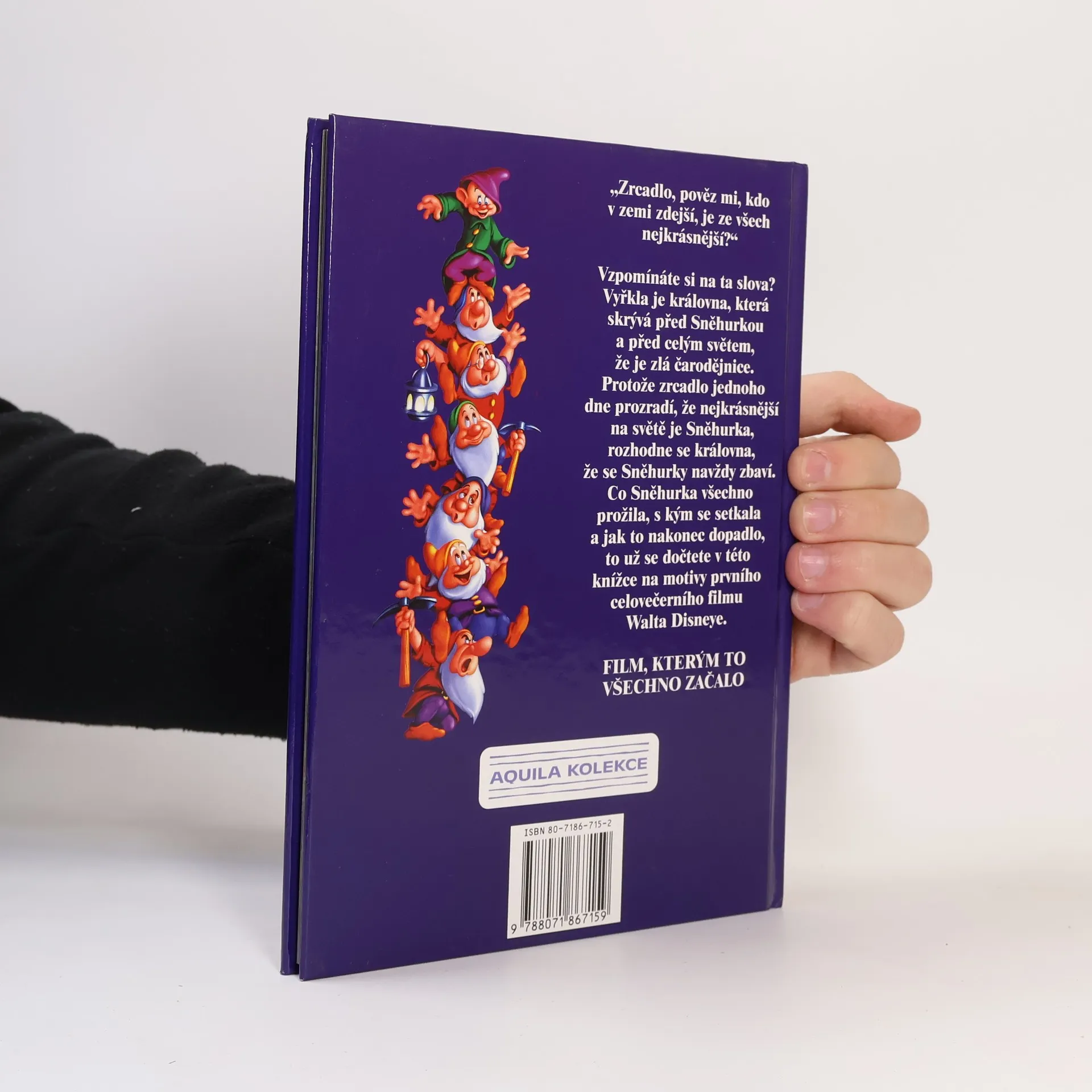 Sněhurka nebyla ani švadlenka, ani baletka, ale opravdová princezna! A kde žila? Ve vysokánském, širokánském hradu u své macechy, zlé královny, která myslela jenom na sebe a den co den se ptala svého zrcadla: Řekni mi, zrcadlo nejchytřejší, kdo že je na světě nejkrásnější? A zrcadlo odpovídalo: Ty, má paní, jsi ze všech nejkrásnější! Až jednoho dne, když Sněhurka vyrostla, zrcadlo zlé královně po pravdě odpovědělo, že nejkrásnější je Sněhurka. A zlá královna se rozhodla, že se Sněhurky zbaví.. Krásně ilustrovaná pohádka z dílny Walta Disneye
