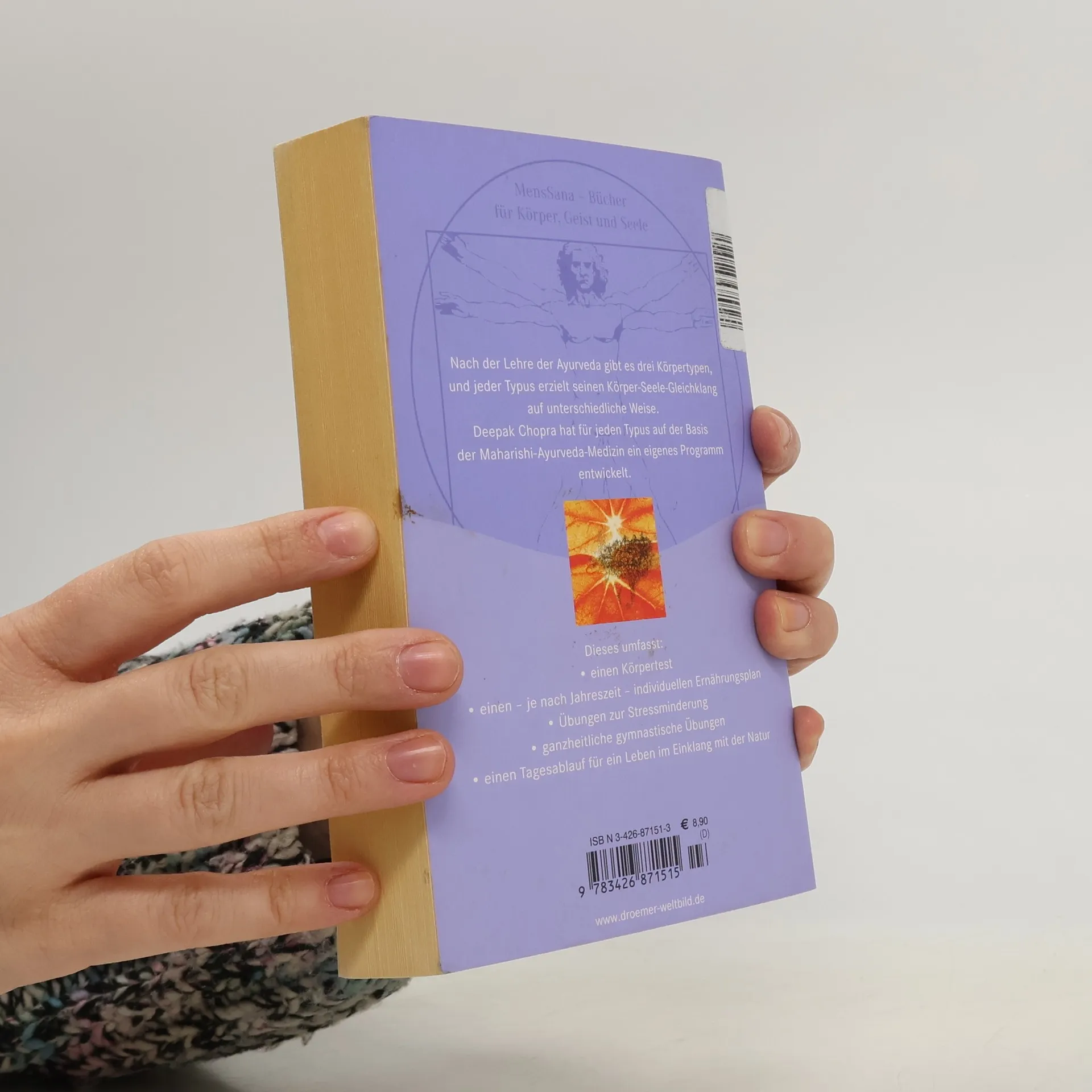 Nach der Lehre der Ayurveda gibt es drei Körpertypen. Jeder Typus erzielt seinen Körper-Seele-Gleichklang auf unterschiedliche Weise. Dr.med. Chopra hat deshalb für jeden auf der Basis der Maharishi-Ayurveda-Medizin ein eigenes Programm entwickelt. Dieses umfaßt: einen - je nach Jahreszeit - individuellen Ernährungsplan Übungen zur Streßminderung einen Körpertest ganzheitliche gymnastische Übungen einen Tagesablauf für ein Leben im Einklang mit der Natur. "Die Körperseele" bieten einen wertvollen Leitfaden, um unser Leben trotz täglicher großer Beanspruchung in Wohlbefinden und Gesundheit meistern zu können.