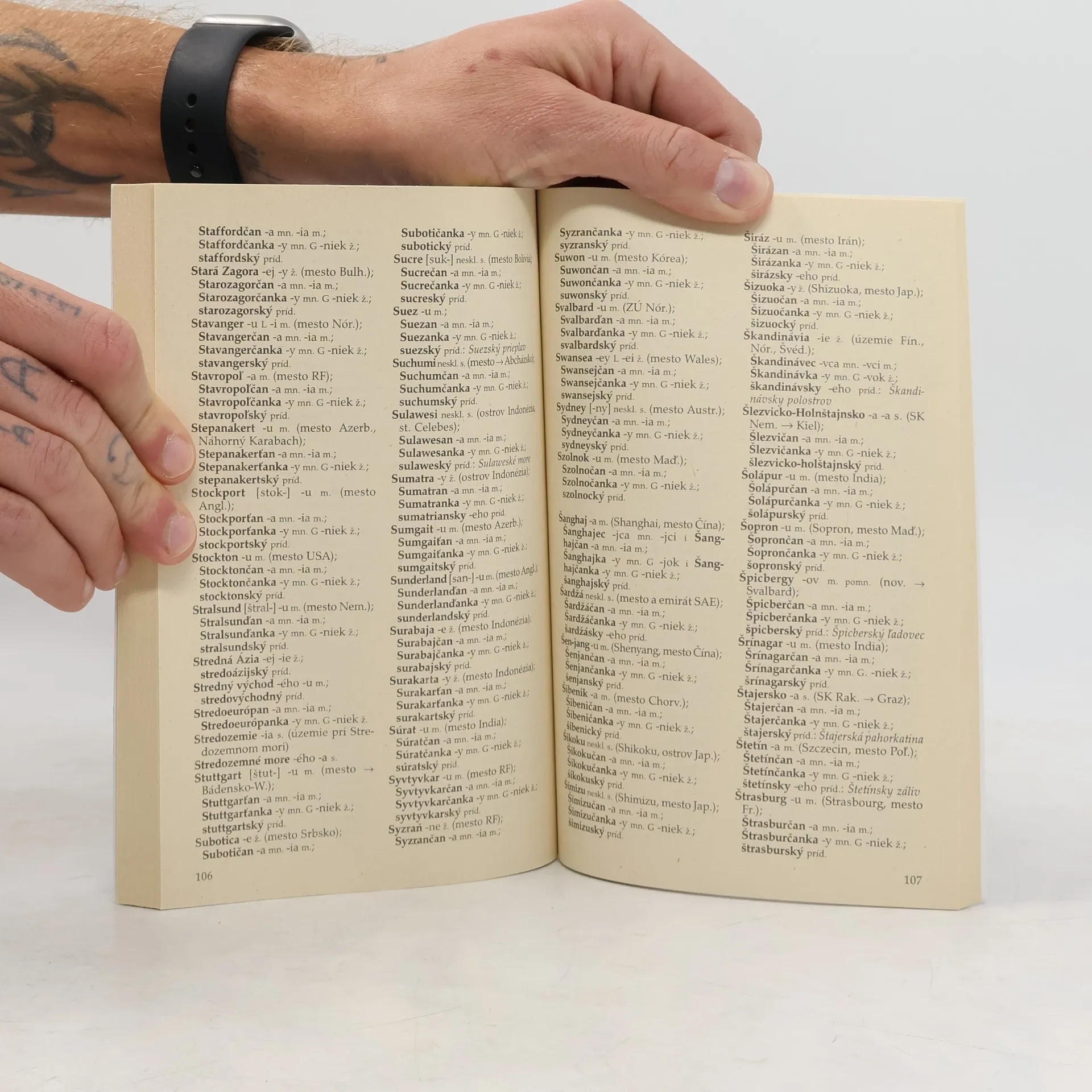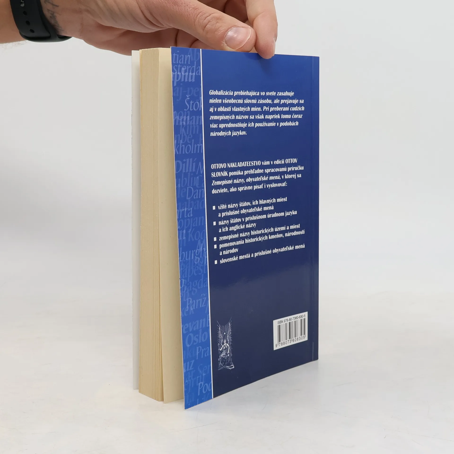 Globalizácia prebiehajúca vo svete zasahuje nielen všeobecnú slovnú zásobu, ale prejavuje sa aj v oblasti vlastných mien. Pri preberaní cudzích zemepisných názvov sa však napriek tomu čoraz viac uprednostňuje ich používanie v podobách národných jazykov. Kapitoly: Vžité názvy štátov, ich hlavných miest a príslušné obyvateľské mená, Názvy štátov v príslušnom úradnom jazyku a ich anglické názvy, Zemepisné názvy historických území a miest, pomenovania historických kmeňov, národností a národov, Slovenské mestá a príslušné obyvateľské mená.