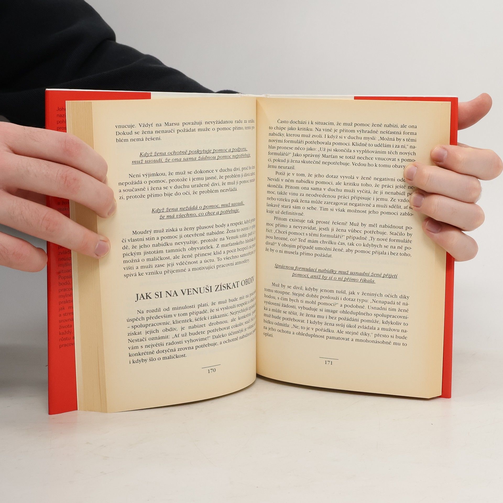 Kniha analyzuje rozdíly mezi způsobem komunikace obou pohlaví při řešení problémů, při zvládání pracovních úspěchů či neúspčhů, při prosazování nových myšlenek a úkolů, ve stresových situacích. Popsáním a vysvětlením mnoha bodů, v nichž si muži a ženy na pracovišti nerozumějí nebo je mylně chápou, nabízí autor praktická východiska a postupy, jak minimalizovat počt konfliktů a stresů. V knize najdete mnoho srovnání i příkladů z každodenního života a měl by si ji přečíst každý, komu záleží na osobním růstu a hodnotných vztazích na pracovišti.
