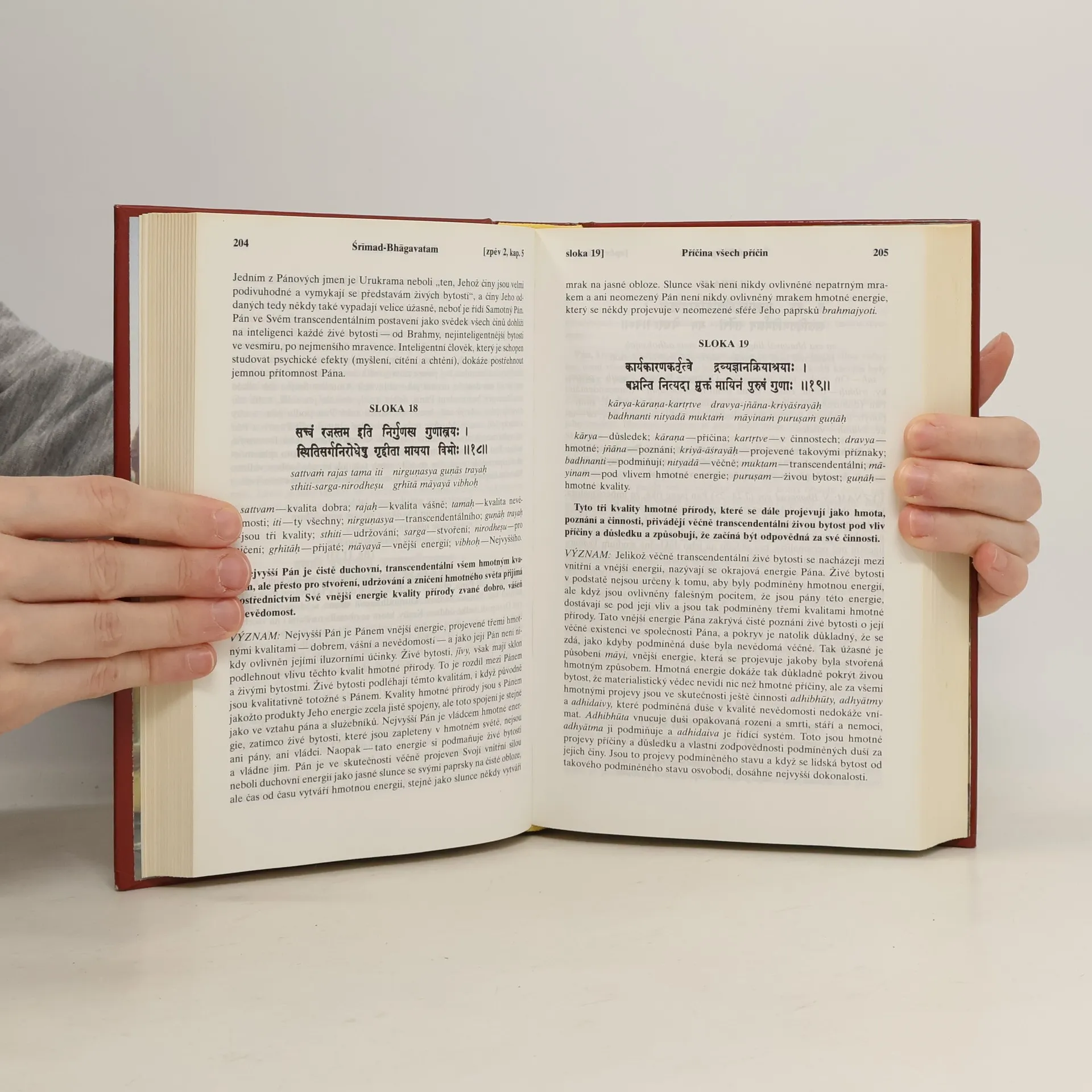Zpěv druhý "Vesmírný projev" s původními sanskrtskými texty, přepisem do anglického písma, českými synonymy, překlady a podrobnými výklady.
