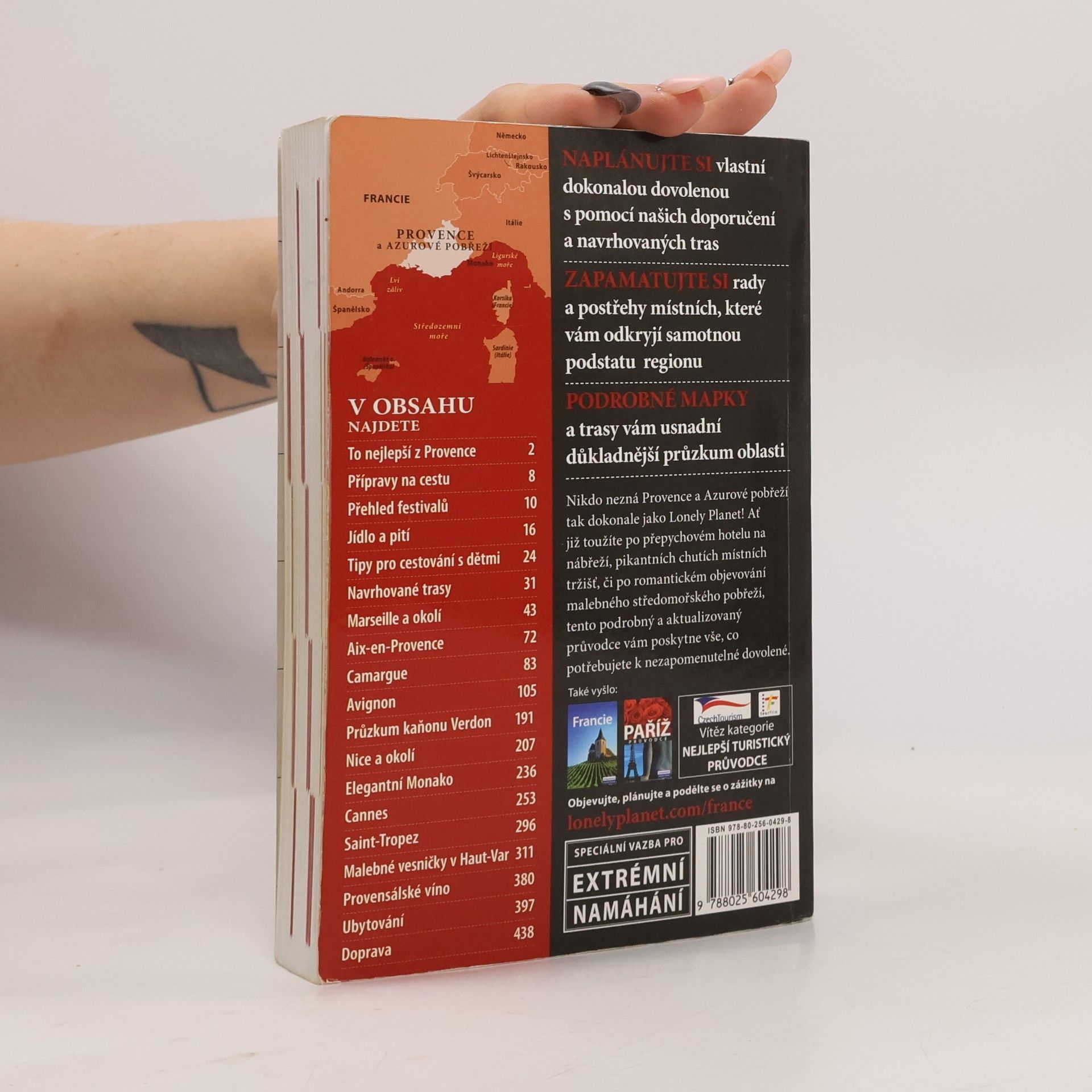 Cestovní příručka obsahuje praktické rady a údaje pro turisty, popisy míst, krajiny a pamětihodností i pojednání o historii a kultuře regionu. Podrobný průvodce z řady Lonely Planet uvádí fakta o historii i současnosti Provence, o přírodě, umění a architektuře. Příručka podává přehled měst, hlavních turistických tras, společenských událostí a zajímavostí. Nechybí informace o kultuře, přírodě, zábavě, nakupování a ubytování.