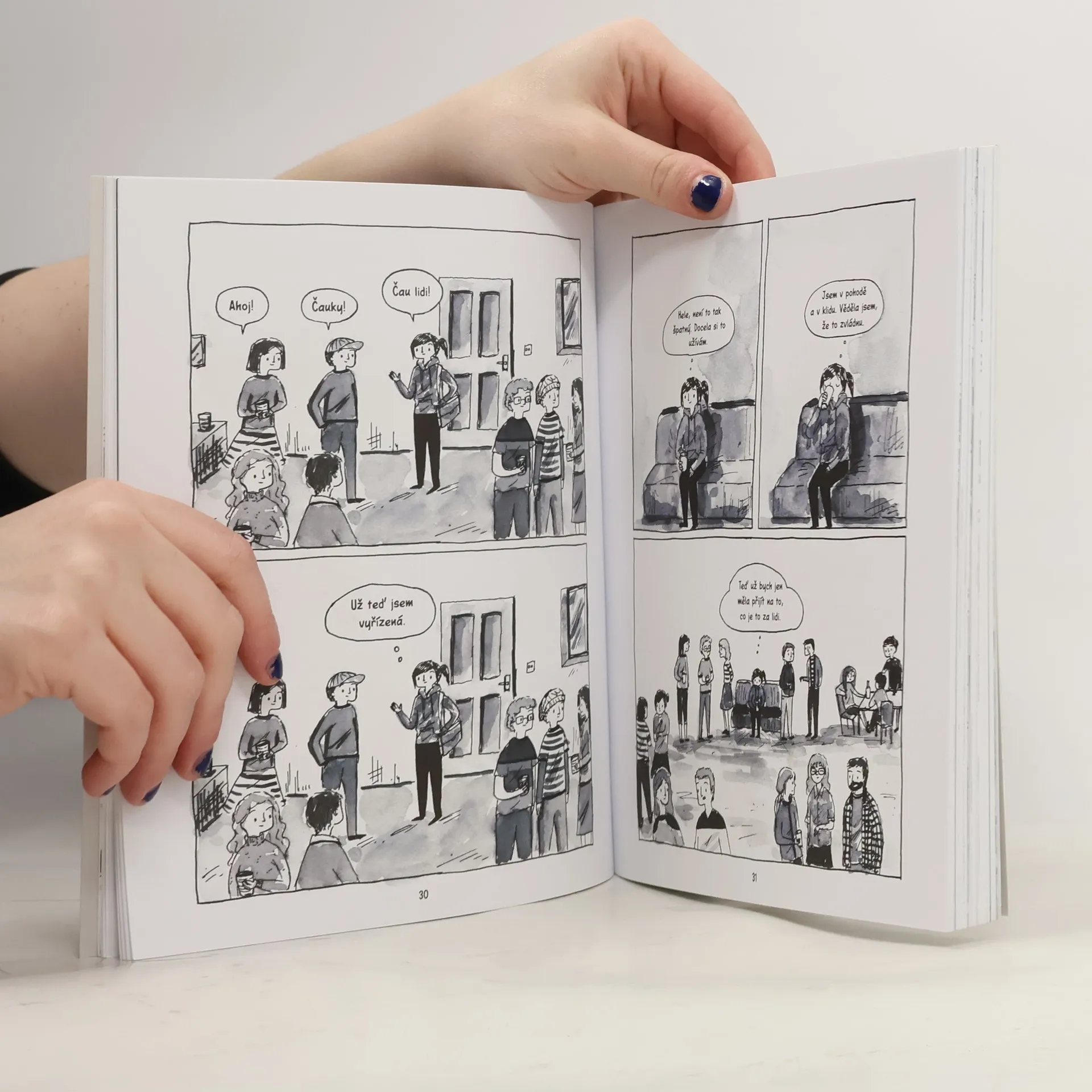 Když jsou vašimi nejlepšími přáteli knihy a vaše představa o báječném víkendu obnáší čtení, spoustu hrnků čaje a malování obrázků, to vše v duchu hesla: „Lidem vstup zakázán“, každé pozvání na večírek nebo do kina představuje výzvu. Místy úsměvná, místy smutná kniha je otevřeným oknem do světa všech, kdo by svůj život nejradši strávili zalezlí pod dekou. Když ale jako Debbie zjistí, že kamarádit se s ostatními lidmi může být fajn, jejich život se rozjasní… Kniha upoutá svým obsahem, ale také jedinečným zpracováním ilustrací. Debbie Tung je ve světě komiksu známou osobou (nejen v zahraničí).