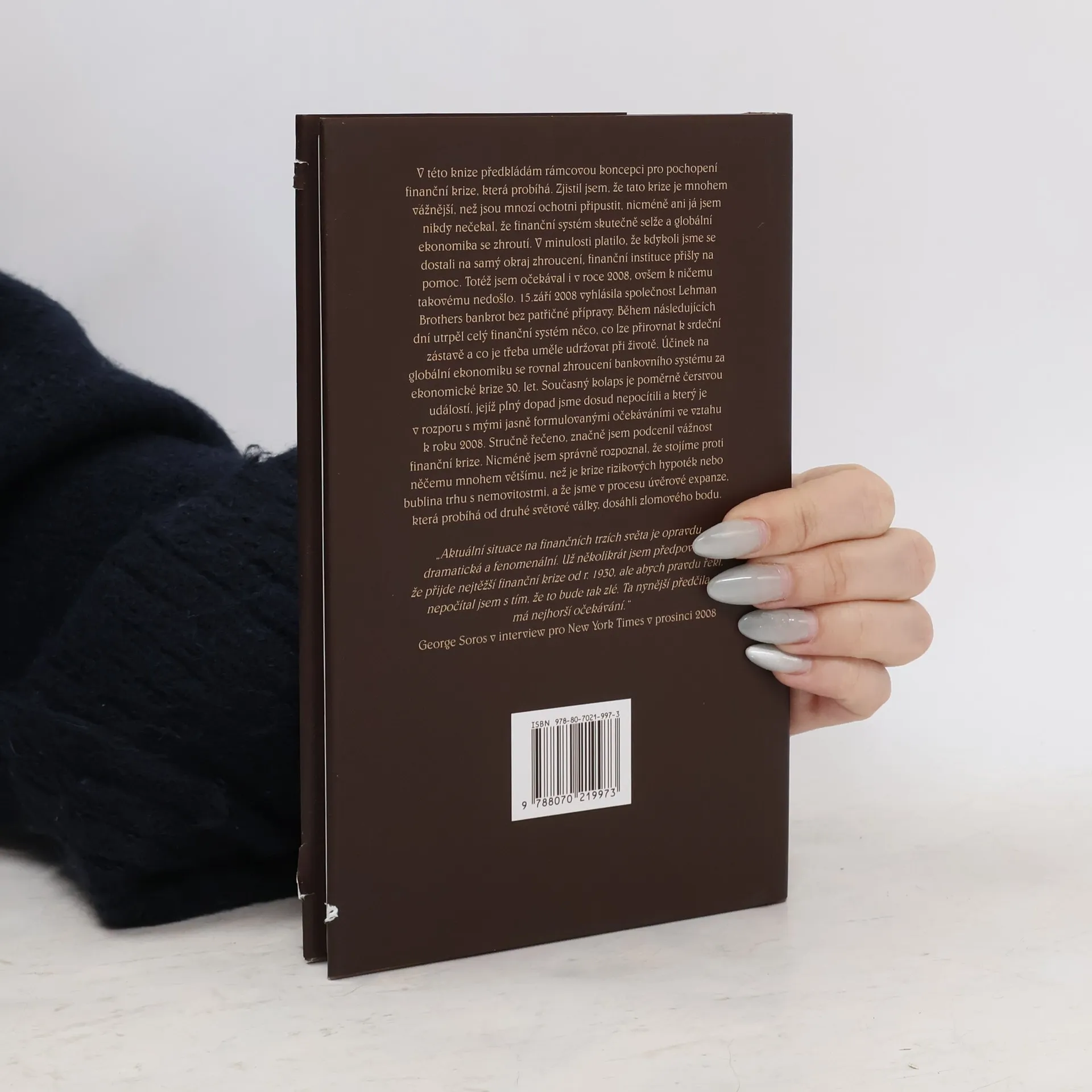 Úvěrová krize 2008 a co dál Jsme uprostřed nejhorší finanční krize od 30. let 20. století. V určitých směrech připomíná jiné krize, které vznikly v posledních pětadvaceti letech, je zde však výrazný rozdíl: stávající krize představuje konec doby úvěrové expanze založené na dolaru jako na mezinárodní rezervní měně. Periodicky se opakující krize byly součástí většího konjunkturního cyklu; nynější krize je vrcholem období vzestupu, které trvalo více než posledních dvacet pět let. Abychom porozuměli tomu, co se děje, potřebujeme nové paradigma. Dosud převládající model, který říká, že finanční trhy směřují k rovnováze, je nesprávný a zároveň zavádějící; naše nynější problémy mohou být z větší části připsány skutečnosti, že mezinárodní finanční systém byl rozvinut na základě tohoto modelu. Nové paradigma, které navrhuji, není omezeno na finanční trhy. Týká se vztahu myšlení a skutečnosti a konstatuje, že mylné představy a chybné výklady hrají velkou roli v určování směru dějin.