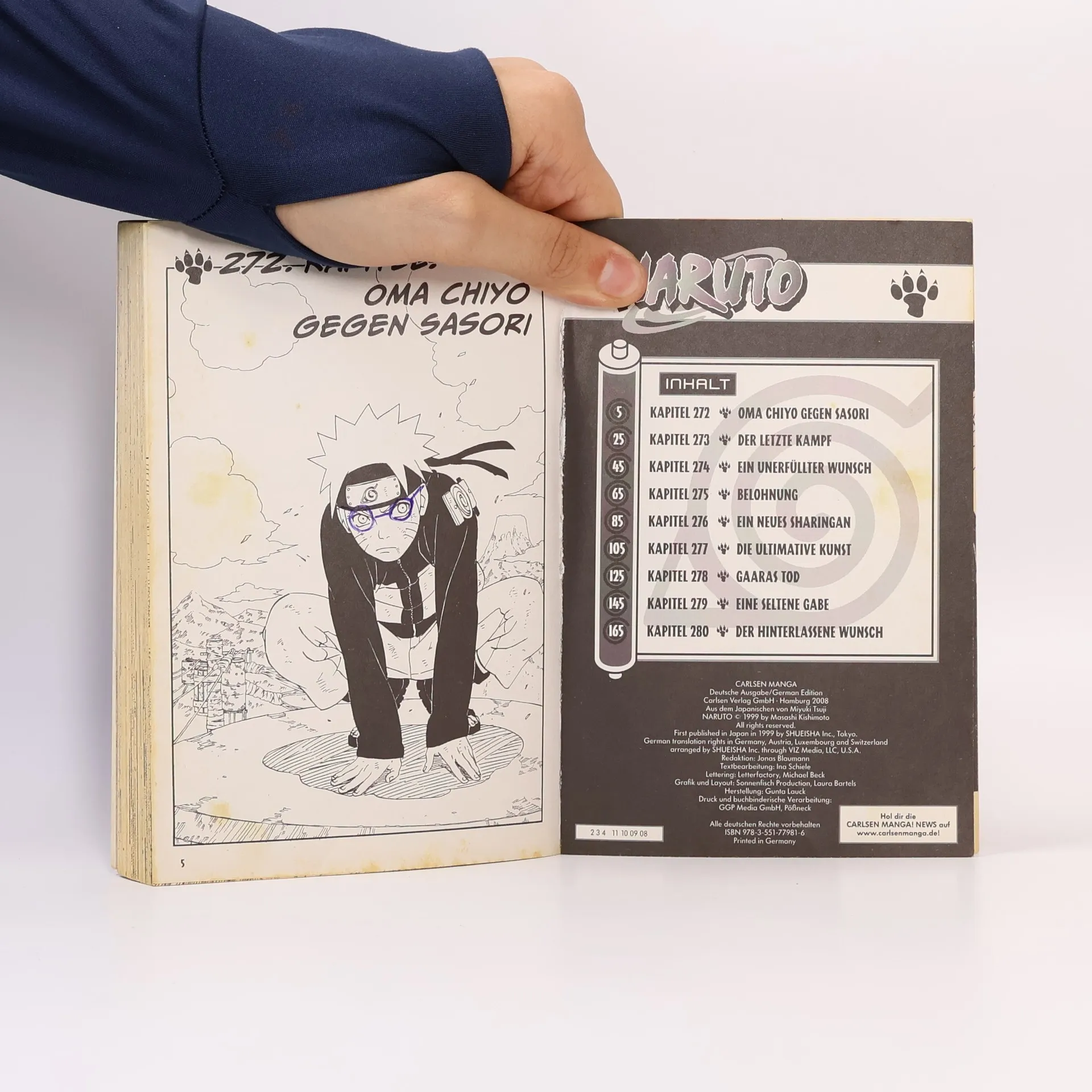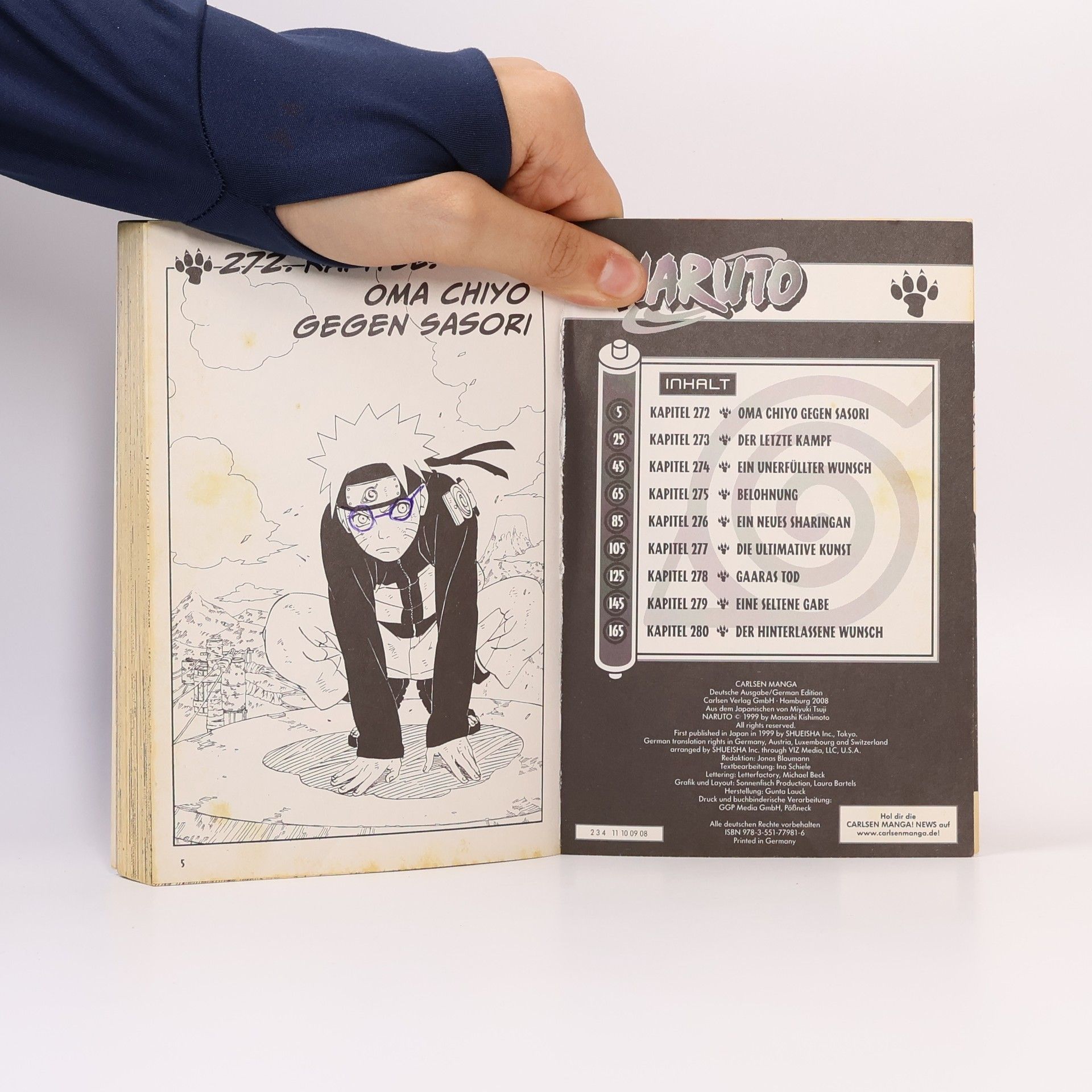 Naruto ist ein junger Shinobi mit einem unverbesserlichen Hang zum Unfug. Er hat einen wilden Sinn für Humor, aber Naruto nimmt seine Mission, der größte Ninja der Welt zu werden, absolut ernst! Die Konoha-Ninja geben alles, um Gaara aus den Fängen der Organisation Akatsuki zu befreien. Sasori, der aus seinem eigenen Körper eine Marionette gemacht hat, greift Sakura und Oma Chiyo an - der Kampf der ungleichen Gegner endet überraschend. Naruto und Kakashi versuchen währenddessen, den flüchtenden Deidara aufzuhalten. Kann Kakashi sein neues Sharingan zu ihrem Vorteil einsetzen?!