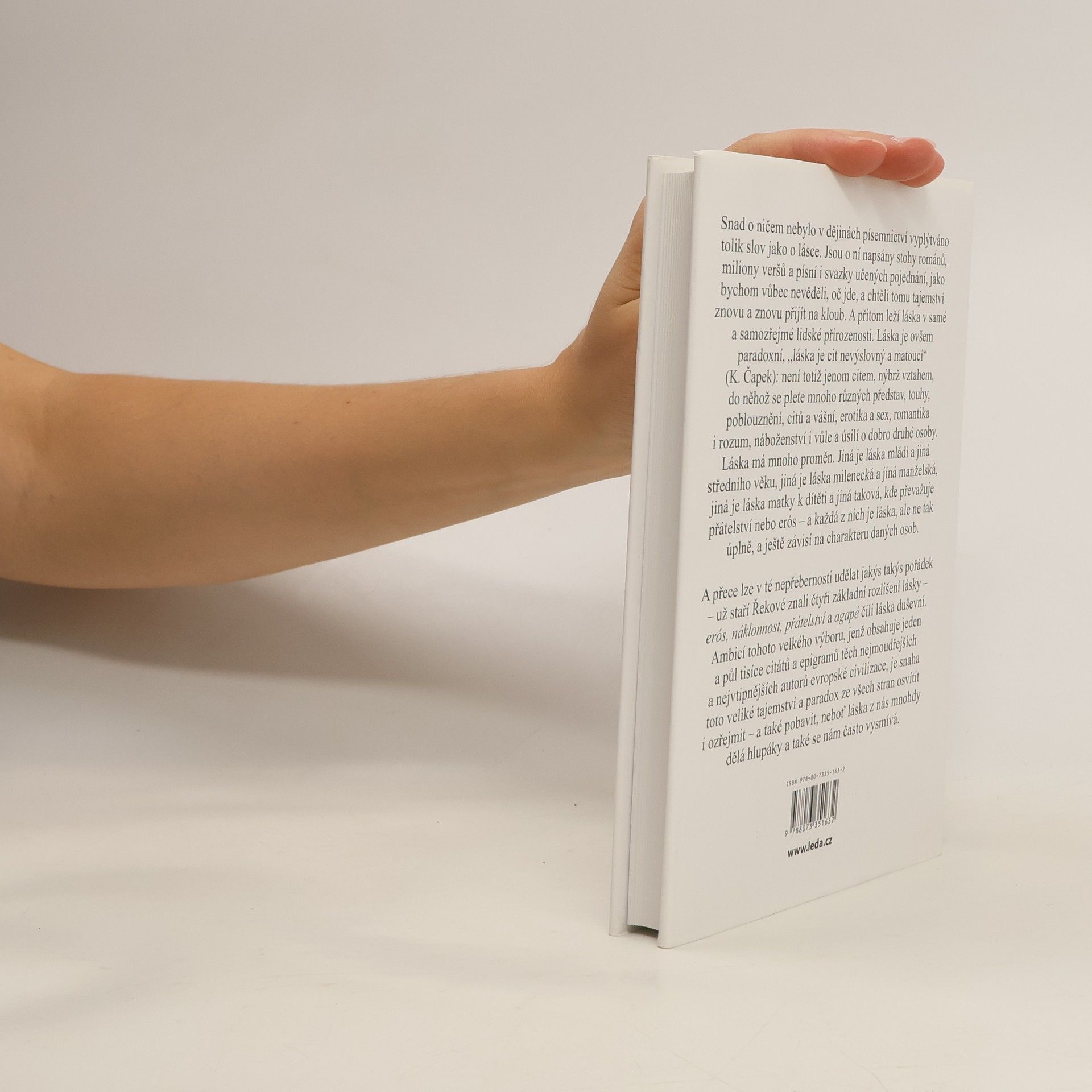 Snad o ničem nebylo v dějinách písemnictví vyplýtváno tolik slov jako o lásce. Jsou o ní napsány stohy románů, miliony veršů a písní i svazky učených pojednání, jako bychom vůbec nevěděli, oč jde, a chtěli tomu tajemství znovu a znovu přijít na kloub. A přitom leží láska v samé a samozřejmé lidské přirozenosti. Láska je ovšem paradoxní, „láska je cit nevýslovný a matoucí“ (K. Čapek): není totiž jenom citem, nýbrž vztahem, do něhož se plete mnoho různých představ, touhy, poblouznění, citů a vášní, erotika a sex, romantika i rozum, náboženství i vůle a úsilí o dobro druhé osoby. Láska má mnoho proměn. Jiná je láska mládí a jiná středního věku, jiná je láska milenecká a jiná manželská, jiná je láska matky k dítěti a jiná taková, kde převažuje přátelství nebo erós – a každá z nich je láska, ale ne tak úplně, a ještě závisí na charakteru daných osob. A přece lze v té nepřebernosti udělat jakýs takýs pořádek – už staří Řekové znali čtyři základní rozlišení lásky – erós, náklonnost, přátelství a agapé čili láska duševní. Ambicí tohoto velkého výboru, jenž obsahuje jeden a půl tisíce citátů a epigramů těch nejmoudřejších a nejvtipnějších autorů evropské civilizace, je snaha toto veliké tajemství a paradox ze všech stran osvítit i ozřejmit – a také pobavit, neboť láska z nás mnohdy dělá hlupáky a také se nám často vysmívá.