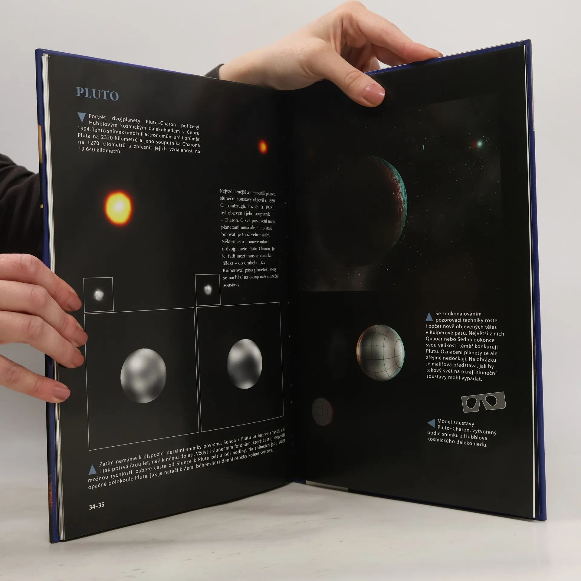 Vesmírné putování začíná Sluncem a pokračuje návštěvou Merkuru, Venuše, Země i jejího věrného souputníka Měsíce. Dále se podíváme na Mars a planetky nacházející se mezi drahou Marsu a Jupiteru, navštívíme i samotný Jupiter a jeho obří družice, nezapomeneme ani na další planety: Saturn, Uran, Neptun a Pluto. Knížka je výjimečná především tím, že vesmírné objekty můžeme vidět za pomoci 3D brýlí trojrozměrně, jako bychom se ocitli v jejich bezprostřední blízkosti.