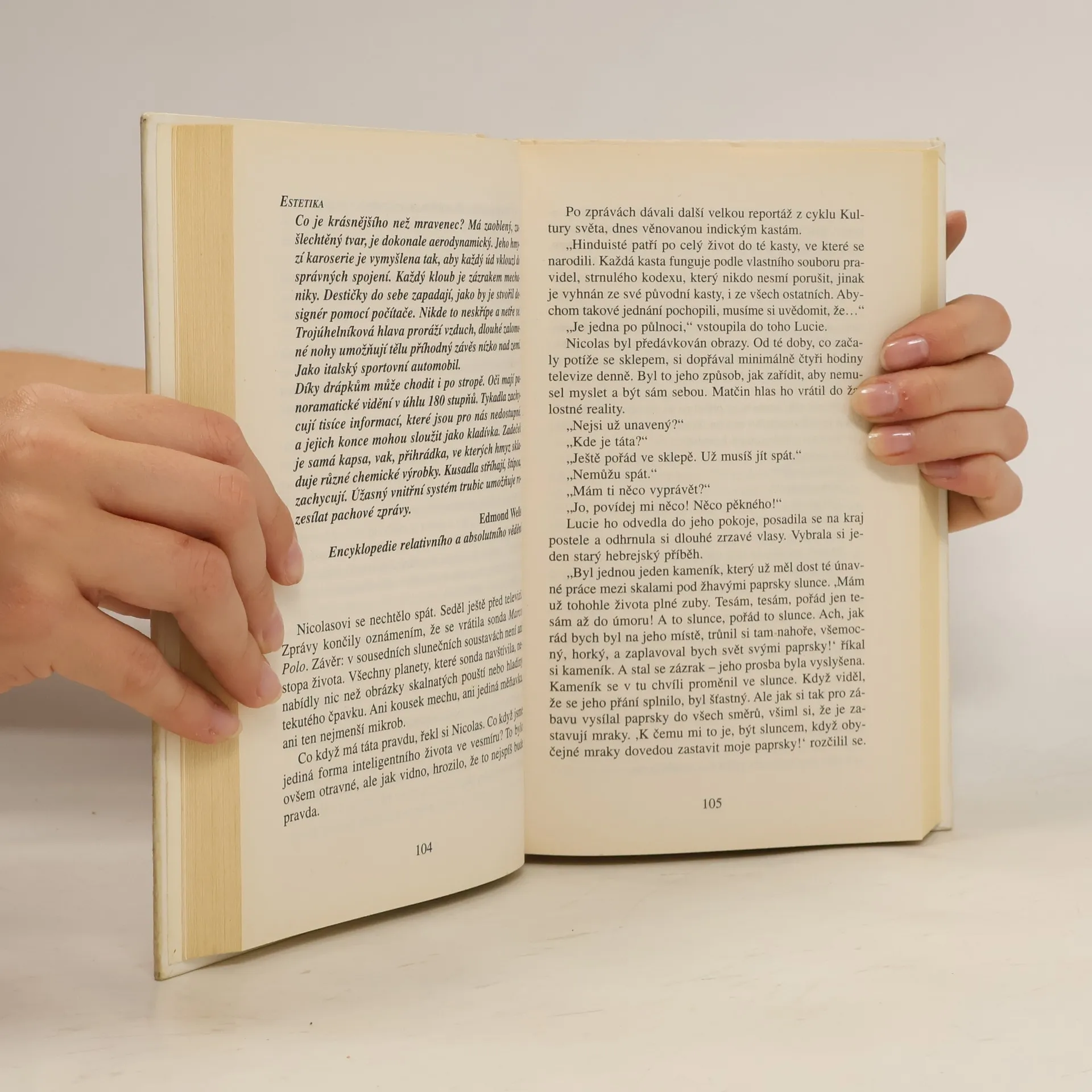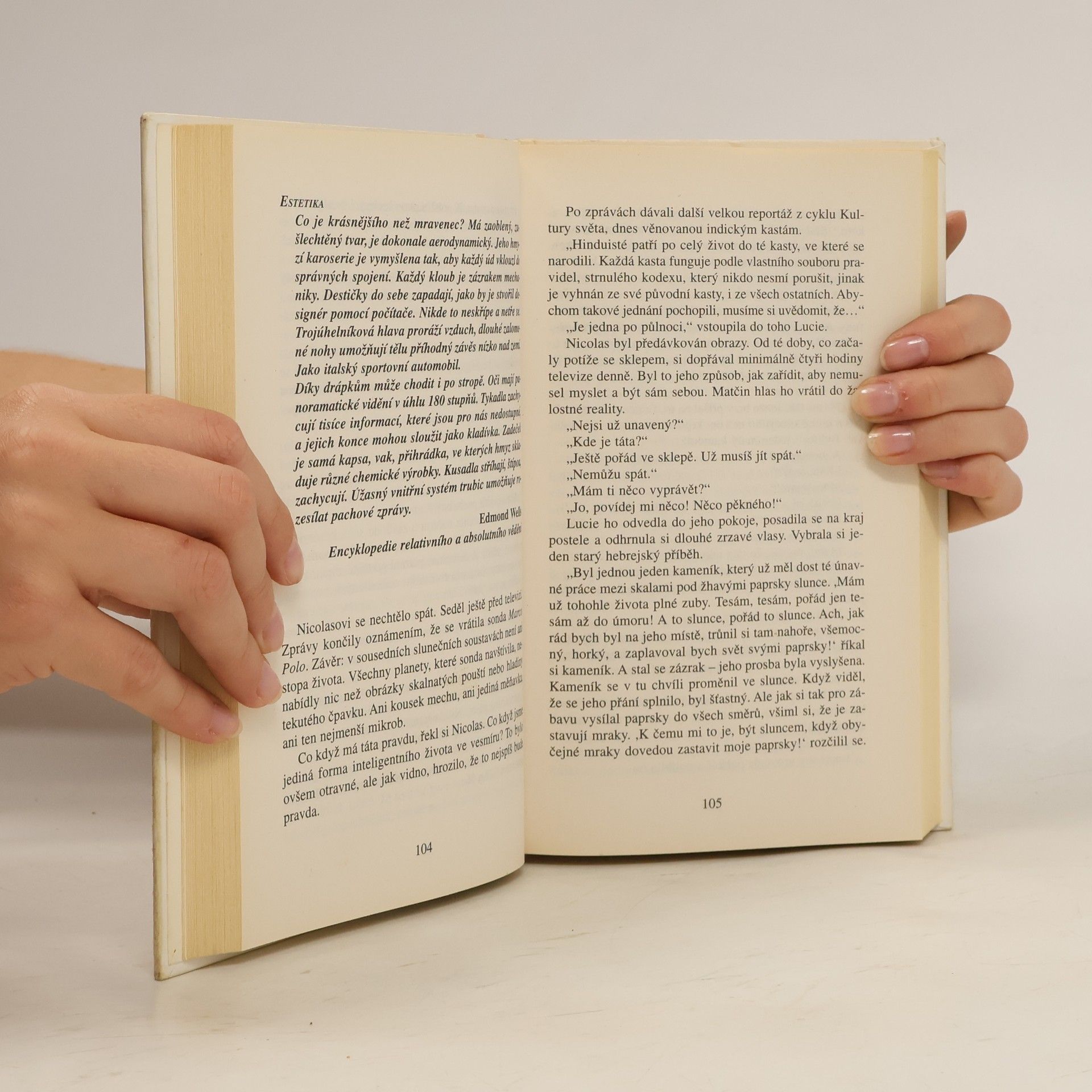 Dávejte pozor, kam šlapete! Během několika vteřin, které potřebujete k přečtení tohoto odstavce, se narodí 40 lidí… a 700 milionů mravenců. Malí, pro nás takřka neviditelní, a přesto úchvatní tvoři vytvořili od doby, kdy se před stovkou milionů let na Zemi objevili, zcela dokonalou a všestranně fungující civilizaci. Budují města a federace, bojují o území, společnými silami odrážejí útoky vetřelců a predátorů. Zakládají houbová políčka nebo mšičí farmy a svá hnízda dokážou utkat z listí. Vyznávají kastovní systém a některé druhy si otrokářským způsobem podrobují jiné. Přestože představivost lidí vždy s oblibou hledala paralelní světy po nejrůznějších koutech vesmíru, na fantastickou existenci těch, kteří žijí v poloskrytu pod našima nohama, se zapomínalo. Jsou mravenci anarchisté, roajalisté anebo se jejich organizace blíží totalitnímu zřízení? Jak chápou čas? Co o nich vlastně víme? A vědí oni o nás? Werberův román Mravenci bývá právem označován jako realistická sci-fi: to nejúžasnější je na něm právě to, co je skutečné. Po jeho přečtení už nikdy nebudete vnímat svět tak jako dosud - stejně jako hrdina knihy, nezaměstnaný pařížský zámečník Jonathan Wells, který po svém excentrickém strýci zdědil suterénní byt a tajemné varování: Hlavně nikdy nechoď do sklepa!
