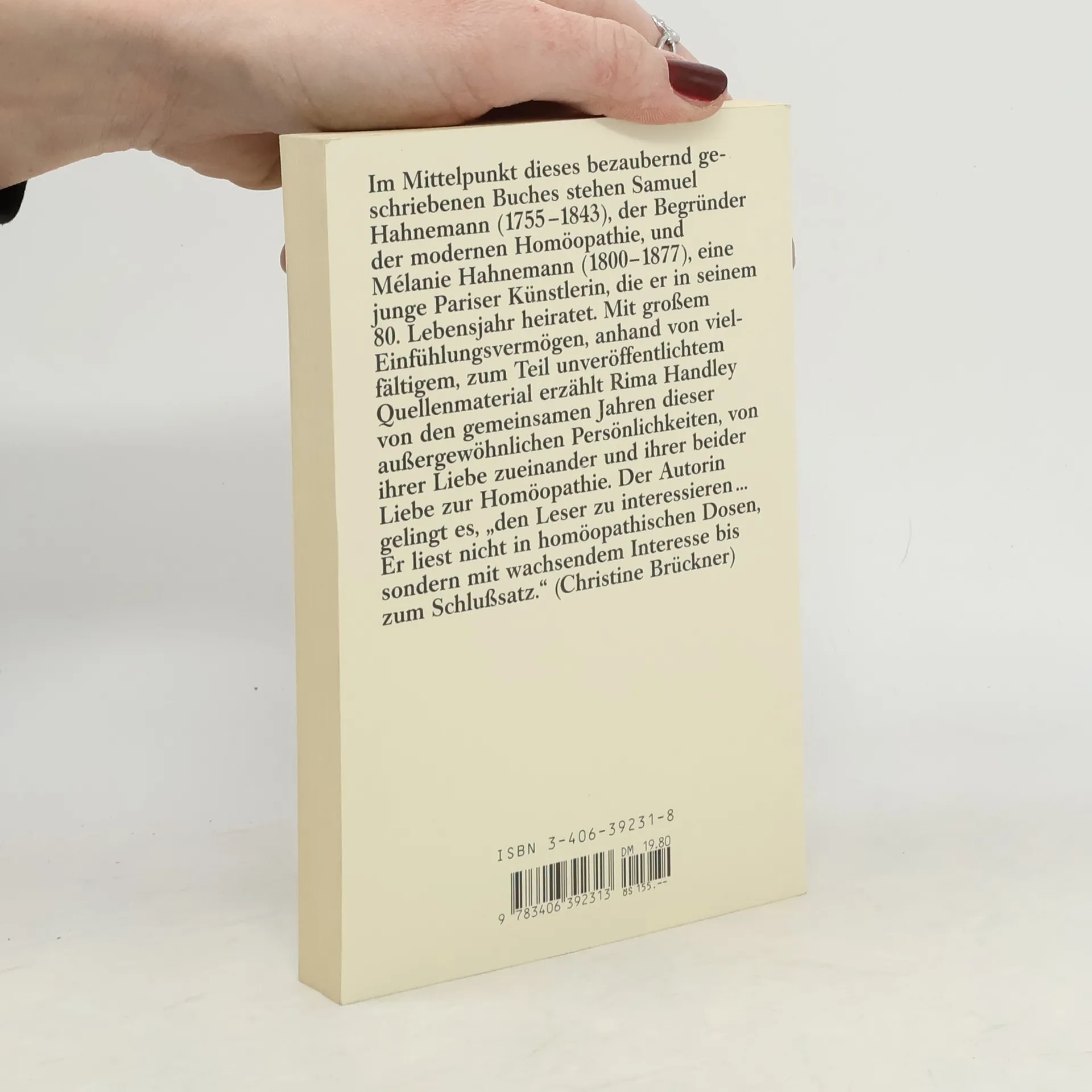 Im Mittelpunkt dieses bezaubernd geschriebenen Buches stehen Samuel Hahnemann (1755-1843), der Begründer der modernen Homöopathie, und Mélanie Hahnemann (1800-1877), eine junge Pariser Künstlerin, die er in seinem 80. Lebensjahr heiratet. Mit großem Einfühlungsvermögen, anhand von vielfältigem, zum Teil unveröffentlichtem Quellenmaterial erzählt Rima Handley von den gemeinsamen Jahren dieser außergewöhnlichen Persönlichkeiten, von ihrer Liebe zueinander und ihrer beider Liebe zur Homöopathie.