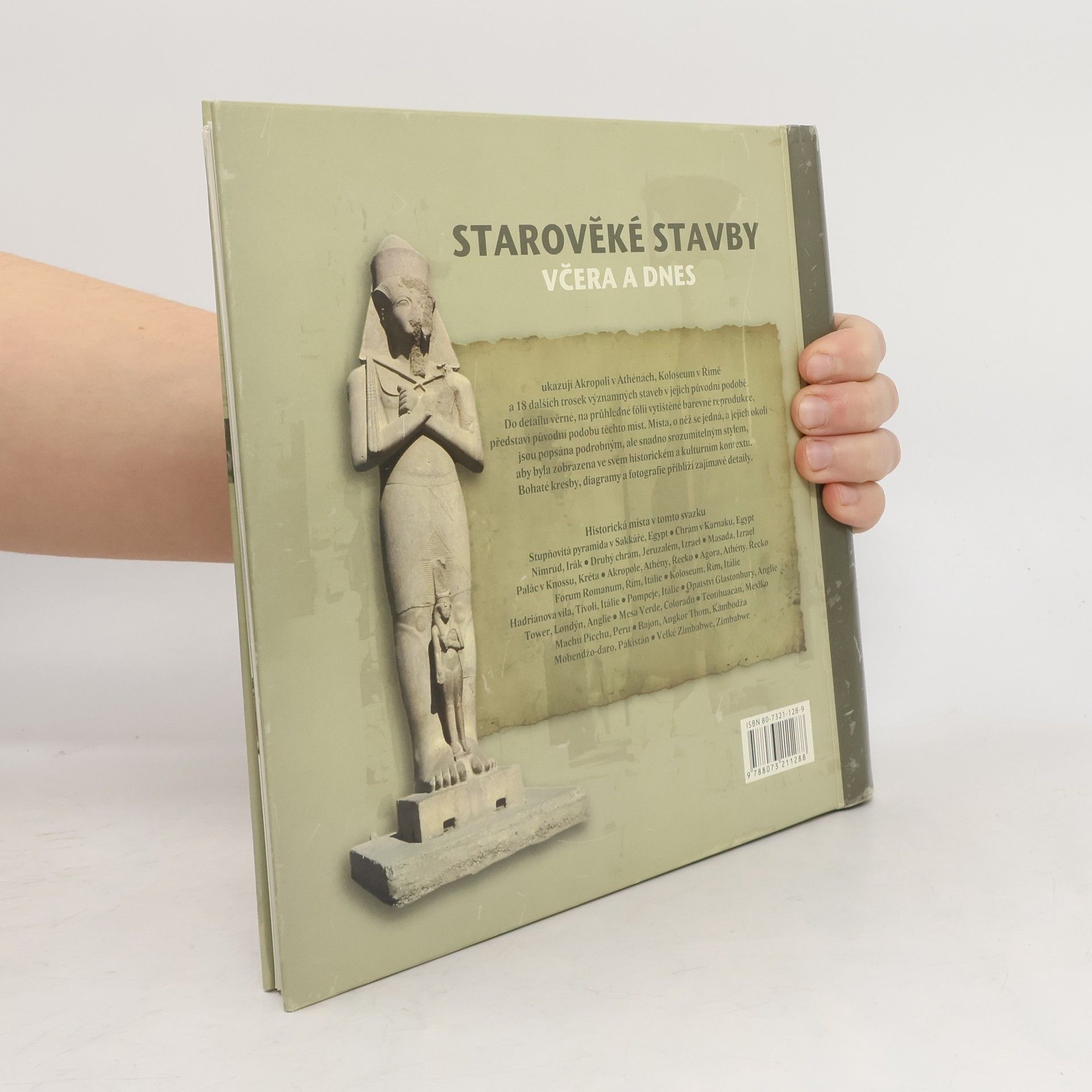 Kniha založená na chytrém nápadu: barevné fotografie dochovaných zbytků velkých staveb evropské, asijské, americké a africké minulosti se překrývají folií, na níž je rekonstrukční kresba. Tak se nám stavby představí v podobě, jakou měly v dobách své největší slávy. Obrázky provází popis, výklad historického a kulturního kontextu stavby, doplňkové fotografie, kresby detailů atd. 2. vydání. zdroj: www.bux.cz