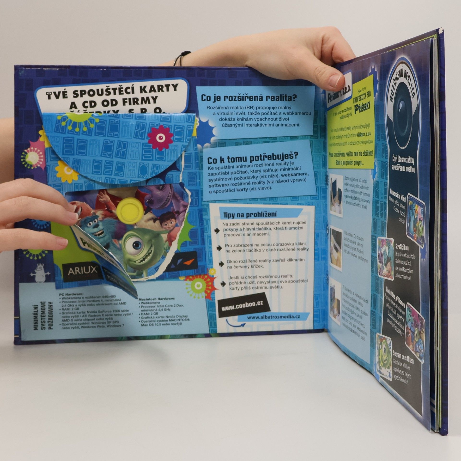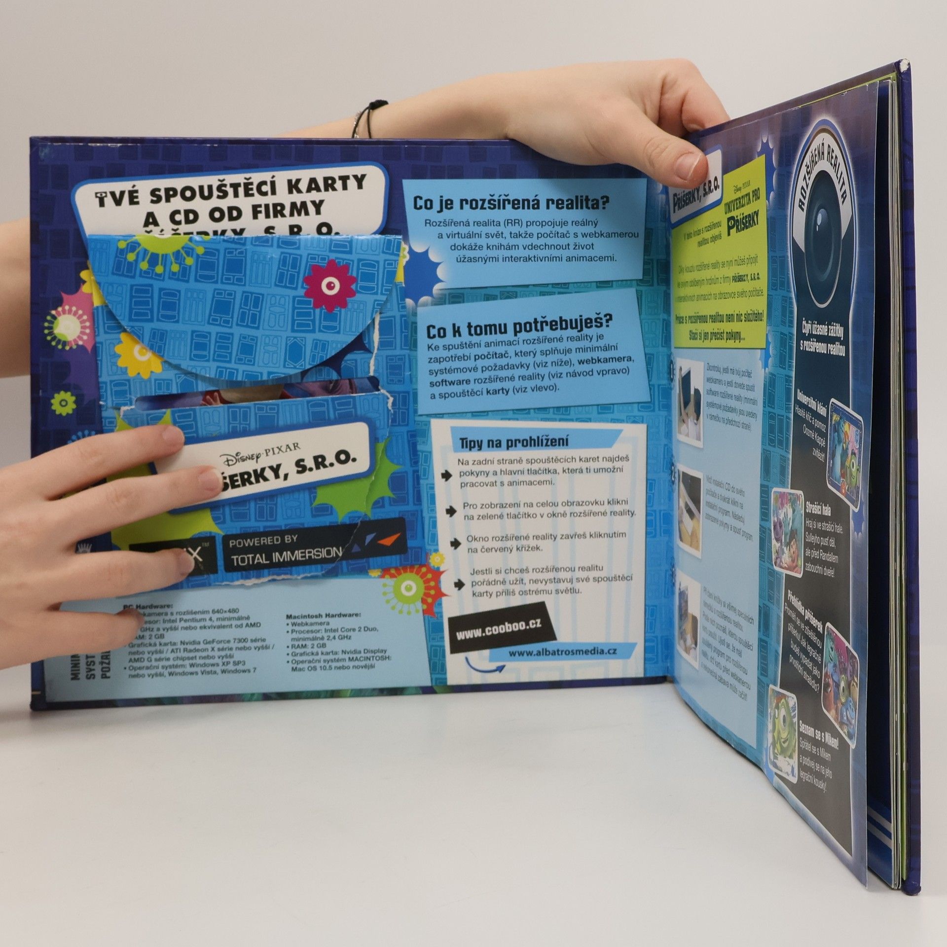 Jednoduše nastav spouštěcí karty před webkameru a spusť interaktivní technologii. Pak se na obrazovce objeví Sulley, Mike a Randall. Poté se můžeš proměnit ve ztřeštěnou příšerku, zabouchávat dveře před Randallem a sledovat, jak tě rozesměje bláznivý Mike!