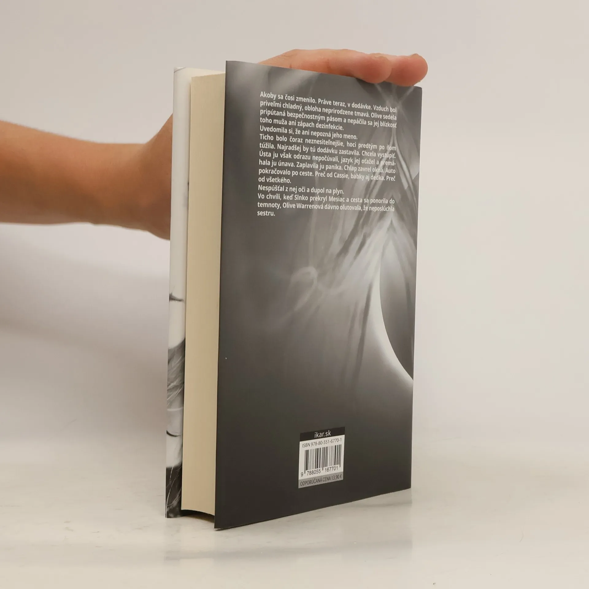 Psychologický triler o tom, akého zla je človek schopný. Počas zatmenia Slnka unesú v mestečku Bishop’s Green dievčatko, na ktoré mala dohliadať staršia sestra Cassie. Nik ho viac nevidel. Po rokoch Cassie opúšťa Londýn, vzdáva sa sľubne rozbehnutej novinárskej kariéry a vracia sa do mestečka postarať sa o chorú babku. Krátko nato zmizne v Bishop’s Green ďalšie dievča presne v sestrinom veku. Cassie sa nevie zbaviť pocitu, že napriek šestnásťročnému rozpätiu únosy súvisia. V hlave jej vŕta zvláštne načasovanie ? k obom incidentom došlo v období zatmenia Slnka. Náhoda? Zámer? Cassie oživuje bolestné spomienky, aby odhalila spojitosť medzi prípadmi. Bishop’s Green je malé mesto, všetci sa poznajú. Kto by bol schopný takého činu?