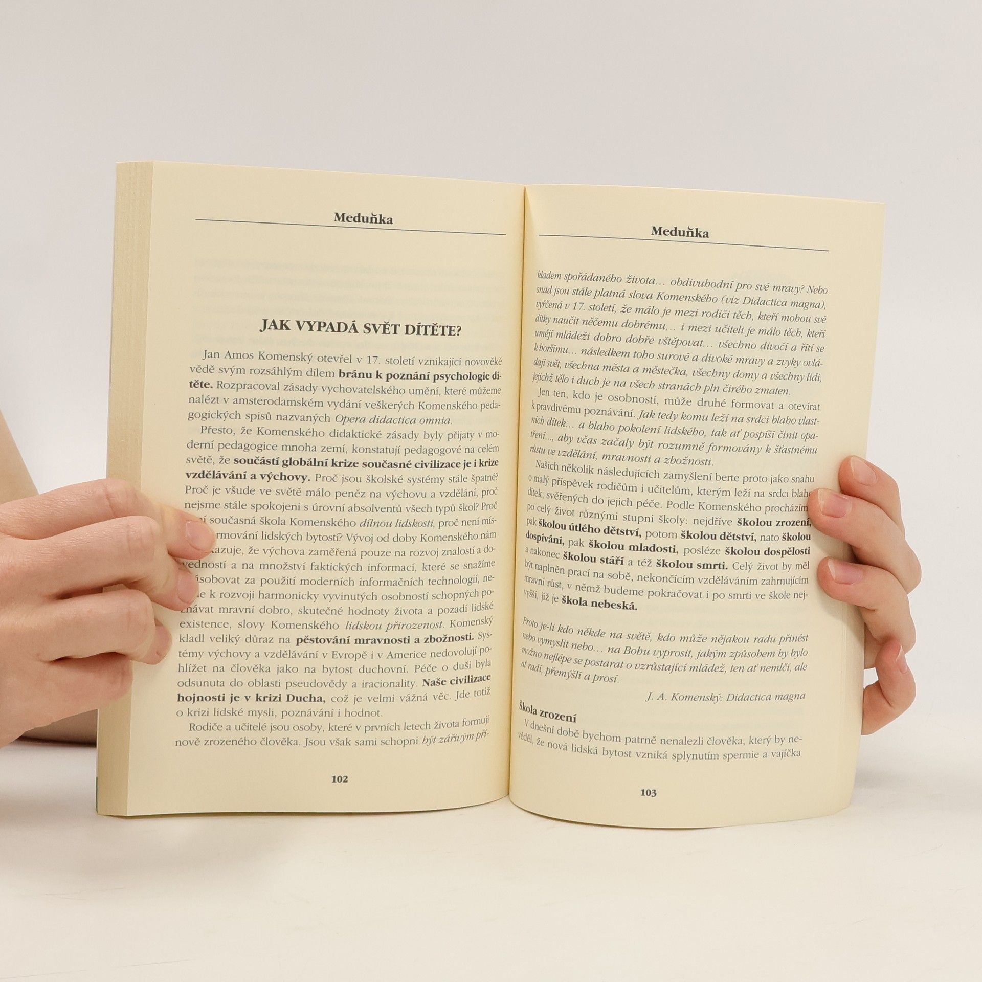 Autorka se v této knize zamýšlí nad tím, jak může každý člověk ve svém každodenním životě přispět k proměnám světa, který je v duchovní krizi. Přivádí čtenáře k tomu, že právě jeho osobní postoje a vědomí přesahu a pokory lidského ducha mohou těmto změnám nápomoci.