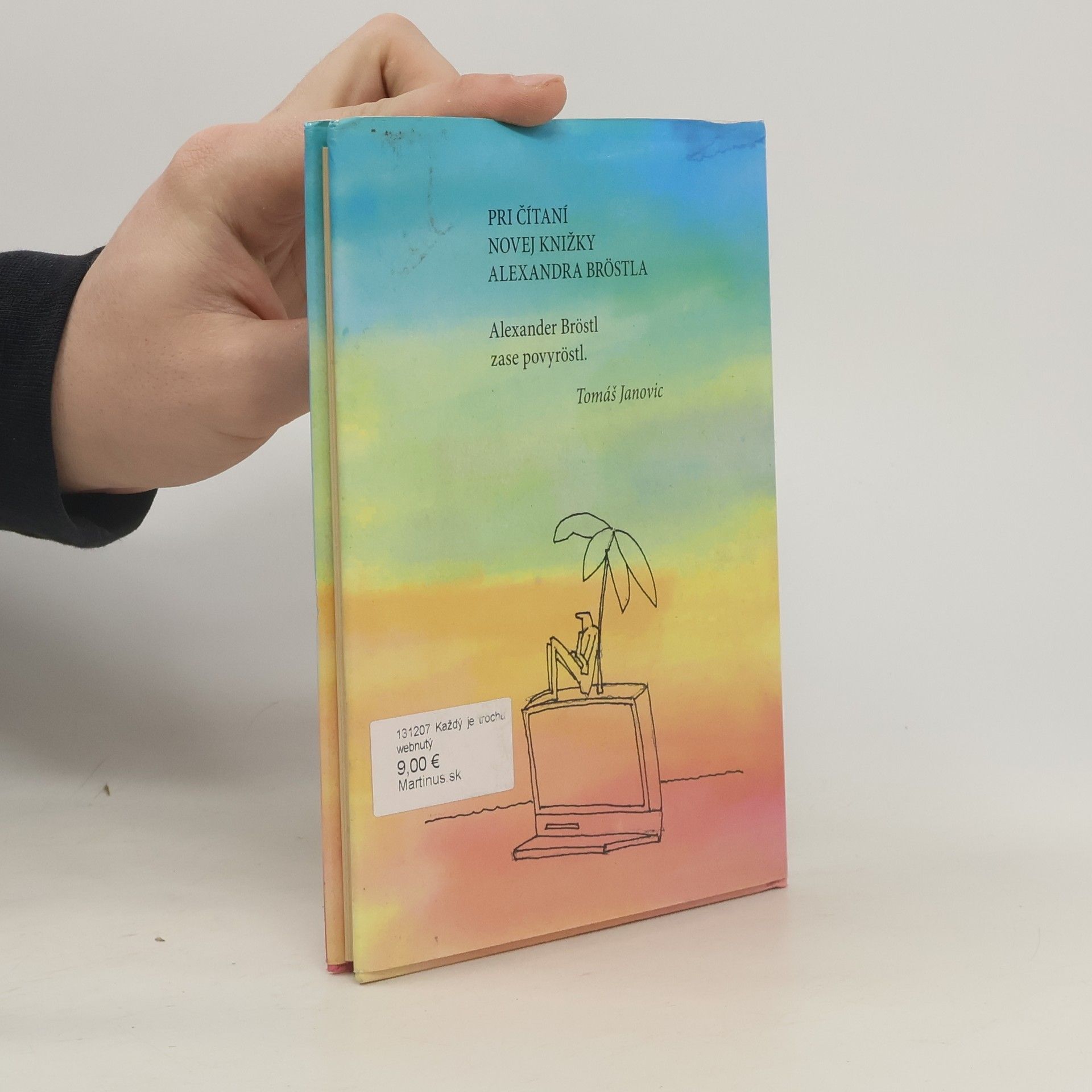 Vo svojej najnovšej knihe sa Alexander Bröstl predstaví ako právny teoretik na málo prejazdené trate (napríklad Košice-Bratislava a späť), glosátor okolitého sveta s postrannými úmyslami, spontánny vyznávač hry na tablete pod šírim webom a distribútor návodov na to, ako sa nepredávkovať pokrokom. Doplnené ilustráciami Kaza Kanalu.