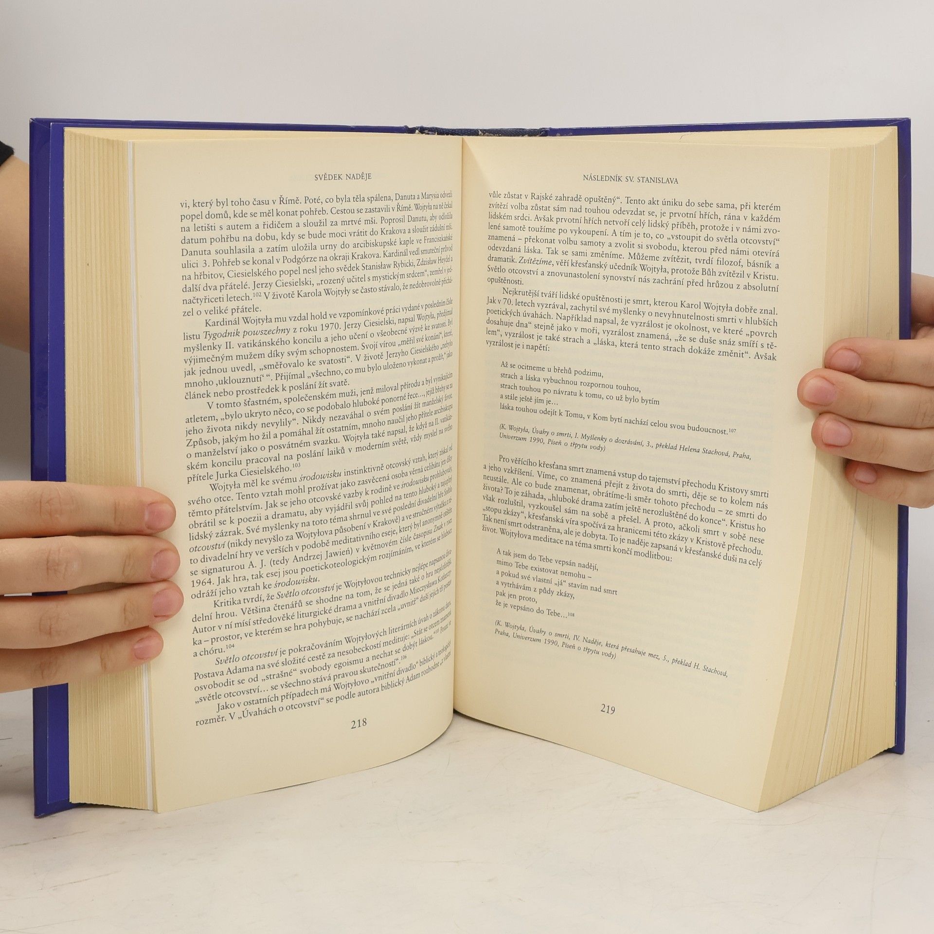 Životopis papeže Jana Pavla II. Unikátní portrét papeže Jana Pavla II. - člověka, myslitele a vůdce, jehož víra v Boha definovala pravidla nového přístupu ke světové politice a změnila chod dějin. Autor čtenáře seznamuje s papežovou nezanedbatelnou úlohou v několika nedávných událostech, například při pádu komunismu. Obsahuje také dříve nevydanou papežovu korespondenci s Leonidem Brežněvem, Michailem Gorbačovem a Tengem Siao-pchingem a čerpá přitom z dosud nezveřejněných autobiografických vzpomínek papeže. Kniha Svědek naděje se věnuje rovněž papežově úsilí postavit mosty do jiných křesťanských společenství a také do islámu, judaismu a dalších významných světových náboženství, podává analýzu návrhů Jana Pavla na posílení demokratických společností v jednadvacátém století a obsahuje stručné shrnutí nejvýznamnějších nauk, jež papež během svého pontifikátu publikoval. Dramatický příběh papeže Jana Pavla II. je dokreslen překlady jeho poezie, detailními vzpomínkami těch, kteří papeže poznali jako mladého muže, kněze a přítele, a obsažnými rozhovory s katolickými vůdci z celého světa.