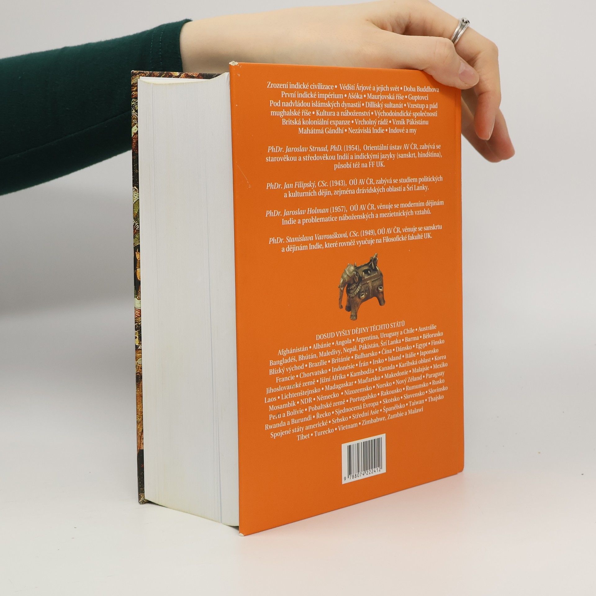 Jedinečný počin autorského kolektivu českých indologů z Orientálního ústavu AV ČR a Univerzity Karlovy představuje významný příspěvek k indologii. Odborníci se zabývají historií Indie, která fascinuje Evropany po staletí a stává se cílem mnoha poutníků. Kdo však skutečně zná dějiny této země od 3. tisíciletí př.n.l. až po současnost? Kolektiv indologů se snaží přiblížit čtenářům dějiny Indie, počínaje nejnovějšími archeologickými výzkumy, které posouvají dataci prvního osídlení do hloubky minulosti. Zkoumá období vzniku buddhismu, který ovlivňuje myšlení i v tradičně křesťanských zemích, a mapuje první státní útvary, mocné dynastie a vznik kastovního systému. Dále se věnuje vlivu muslimských vládců a moderním dějinám, které jsou poznamenány anglickou kolonizací a bojem Indů proti cizí nadvládě. Zmiňuje také rivalitu mezi Indy a ne-Indy, vznik států Pakistánu a Bangladéše a trvalé konflikty. Dnes se Indie potýká s mnoha problémy mnohonárodnostního státu, náboženským extremismem a kontrastem mezi bohatstvím a chudobou, zatímco se snaží vytvořit moderní demokratickou společnost.