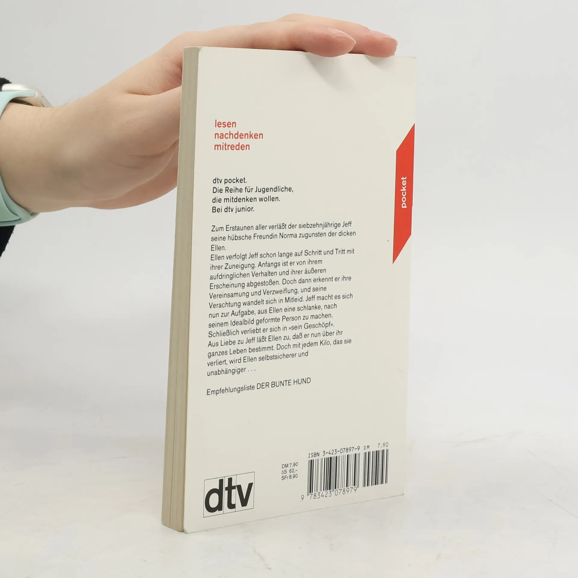 Zum Erstaunen aller verläßt der siebzehnjährige Jeff seine hübsche Freundin Norma zugunsten der dicken Ellen. Ellen verfolgt Jeff schon lange auf Schritt und Tritt mit ihrer Zuneigung. Anfangs ist er von ihrem aufdringlichen Verhalten und ihrer äußeren Erscheinung abgestoßen. Doch dann erkennt er ihre Vereinsamung und Verzweiflung, und seine Verachtung wandelt sich in Mitleid. Jeff macht es sich nun zur Aufgabe, aus Ellen eine schlanke, nach seinem Idealbild geformte Person zu machen. Schließlich verliebt er sich in »sein Geschöpf«. Aus Liebe zu Jeff läßt Ellen zu, daß er nun über ihr ganzes Leben bestimmt. Doch mit jedem Kilo, das sie verliert, wird Ellen selbstsicherer und unabhängiger...