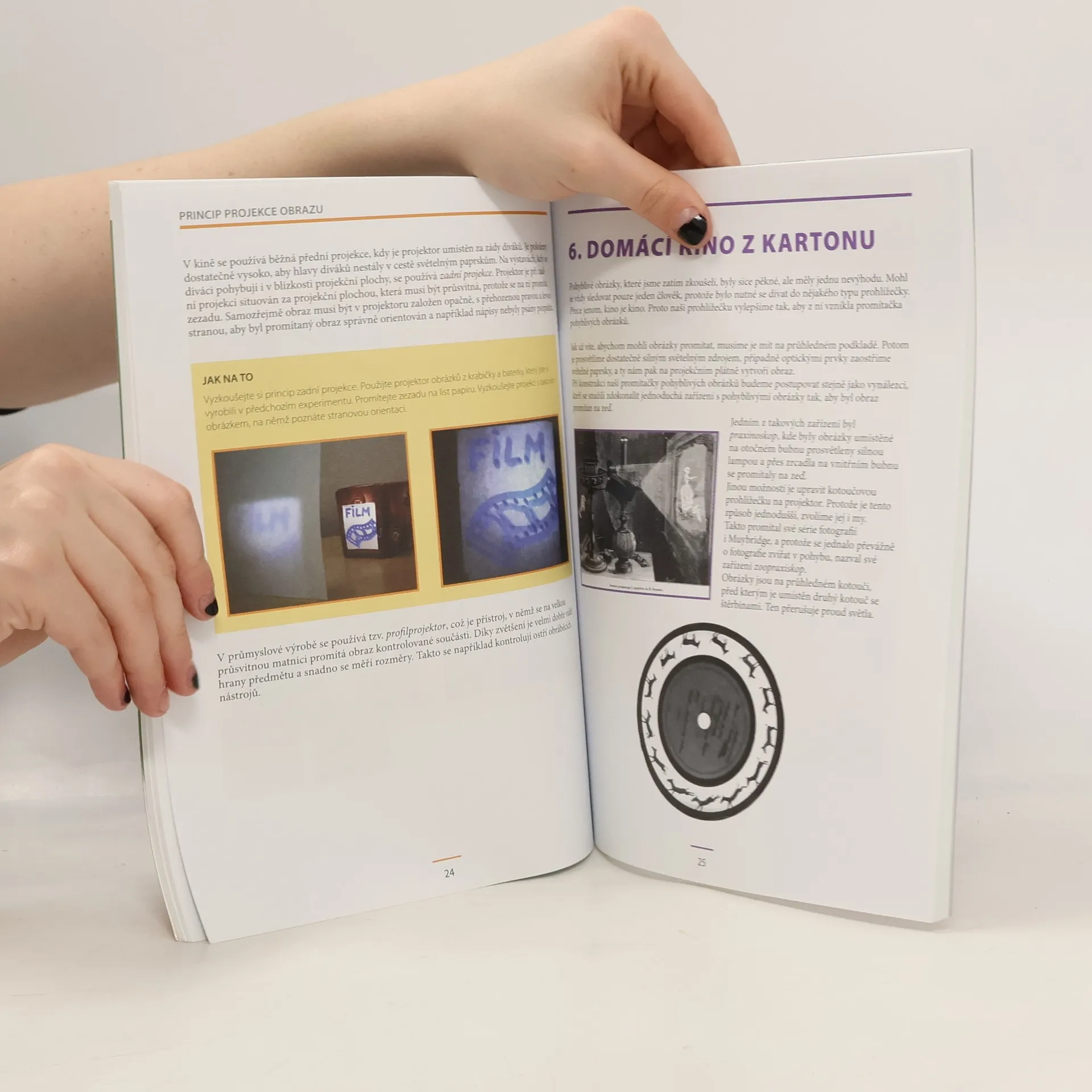 Kniha ukazuje dětem ve zkrácené a hravé podobě vývojovou cestu filmové kamery a projektoru. Pomocí zábavných a funkčních modelů dětem přiblíží, jak uvedená zařízení fungují. Při výrobě modelů postačí kartonové krabice, nůžky, špejle, lepidlo, fixy, baterka a průhledné folie.