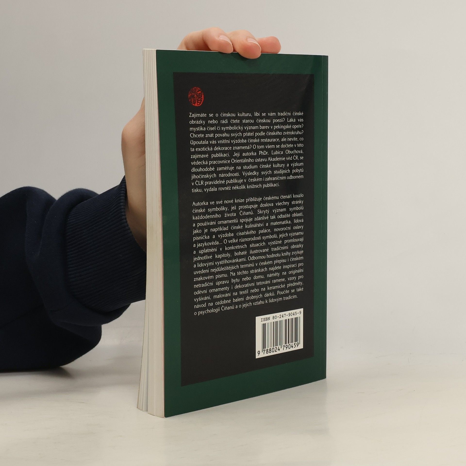 Kniha zabývající se čínskou symbolikou. Jednotlivé kapitoly knihy seznamují čtenáře s velkou různorodosti symbolů, jejich významem a uplatněním v konkrétních situacích. Čínský zvěrokruh, čínská kuchyně, mystika čísel, symbolický význam barev v pekingské opeře atd. Kniha je vypravena bohatými ilustracemi, tradičními obrázky a lidovými vystřihovánkami.