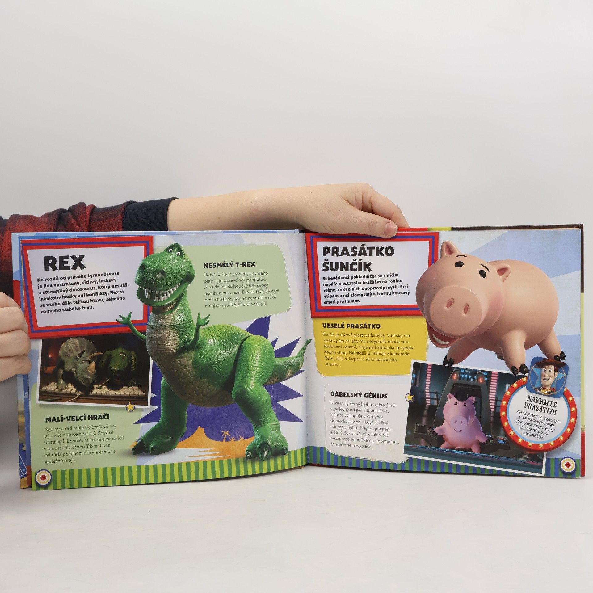 Otevřete knížku a vstupte do skrytého světa hraček. Aplikace pro rozšířenou realitu v tabletu nebo mobilním telefonu vás přenese do super tajného světa, ve kterém hračky ožívají svým vlastním životem. Podívejte se na stránky mobilním zařízením, a hrdinové ožijí přímo na na listech vaší knížky. Seznámíte se s kladnými hrdiny ze světa hraček, jako je šerif Woody Pride, kovbojka Jessie, Rakeťák Buzz a další, ale i se zápornými z Mazlova gangu, například Mazlem, medvědem vonícím po jahodách, Kudlou anebo Petem Stinkym, zlatokopem, který brání Woodymu vrátit se domů. Celá kniha je plná celostránkových ilustrací hrdinů a snímků ze scén filmu. V knize najdete vtipné hlášky oblíbených hrdinů, které jste mohli zaslechnout ve filmovém Příběhu hraček. Přečtete si o svých hrdinech jejich filmové příběhy, a dozvíte se informace, které jste dosud neznali. Prožijte se svými hrdiny dobrodružství, pohrajte si s nimi v rozšířené realitě a užijte si zábavu v super skrytém světě hraček.