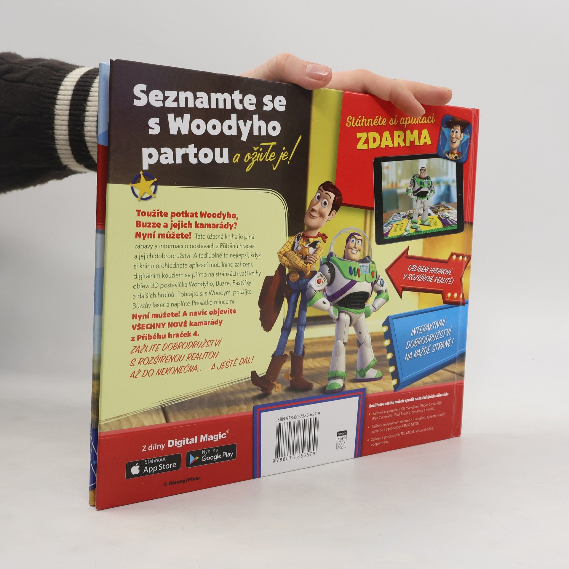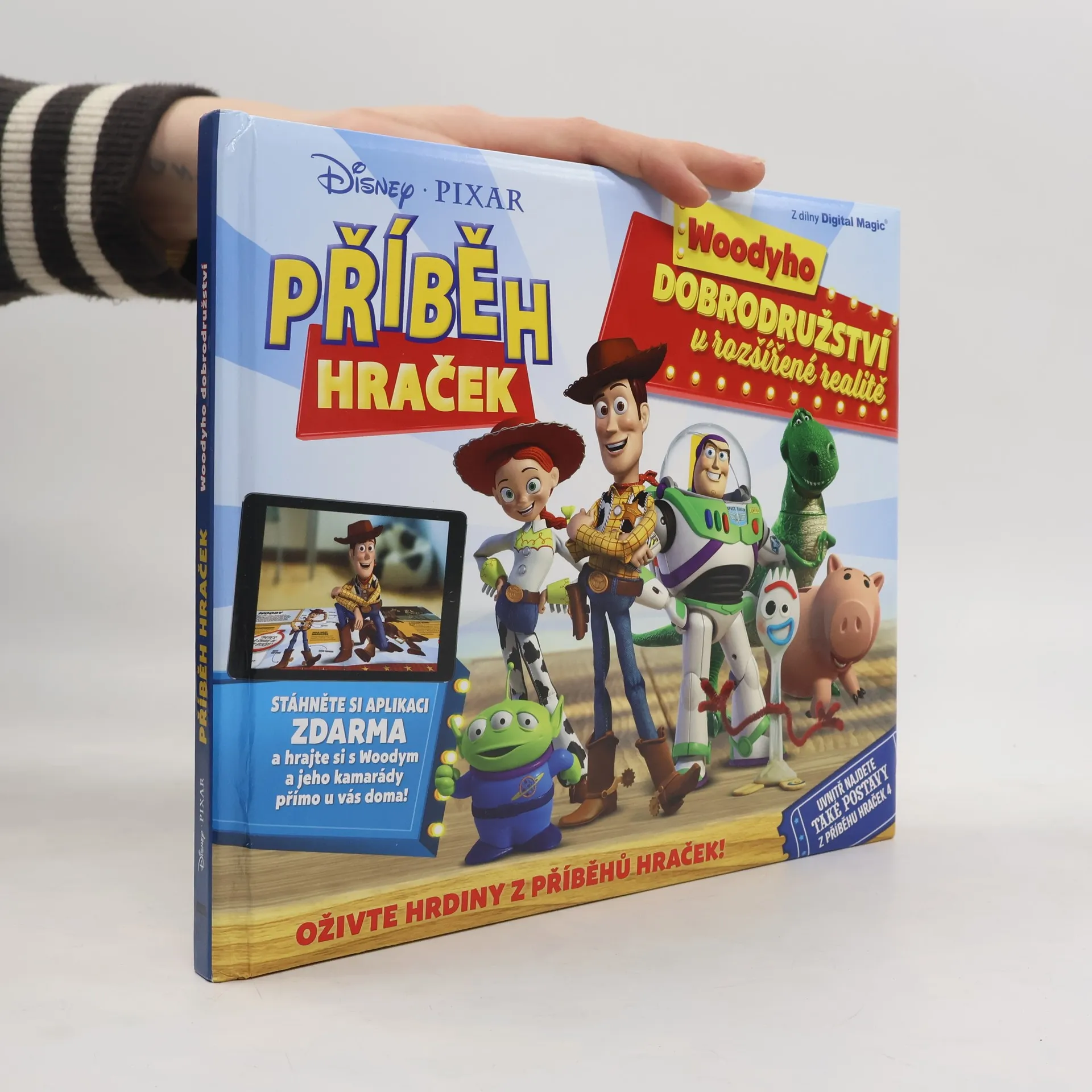 Otevřete knížku a vstupte do skrytého světa hraček. Aplikace pro rozšířenou realitu v tabletu nebo mobilním telefonu vás přenese do super tajného světa, ve kterém hračky ožívají svým vlastním životem. Podívejte se na stránky mobilním zařízením, a hrdinové ožijí přímo na na listech vaší knížky. Seznámíte se s kladnými hrdiny ze světa hraček, jako je šerif Woody Pride, kovbojka Jessie, Rakeťák Buzz a další, ale i se zápornými z Mazlova gangu, například Mazlem, medvědem vonícím po jahodách, Kudlou anebo Petem Stinkym, zlatokopem, který brání Woodymu vrátit se domů. Celá kniha je plná celostránkových ilustrací hrdinů a snímků ze scén filmu. V knize najdete vtipné hlášky oblíbených hrdinů, které jste mohli zaslechnout ve filmovém Příběhu hraček. Přečtete si o svých hrdinech jejich filmové příběhy, a dozvíte se informace, které jste dosud neznali. Prožijte se svými hrdiny dobrodružství, pohrajte si s nimi v rozšířené realitě a užijte si zábavu v super skrytém světě hraček.