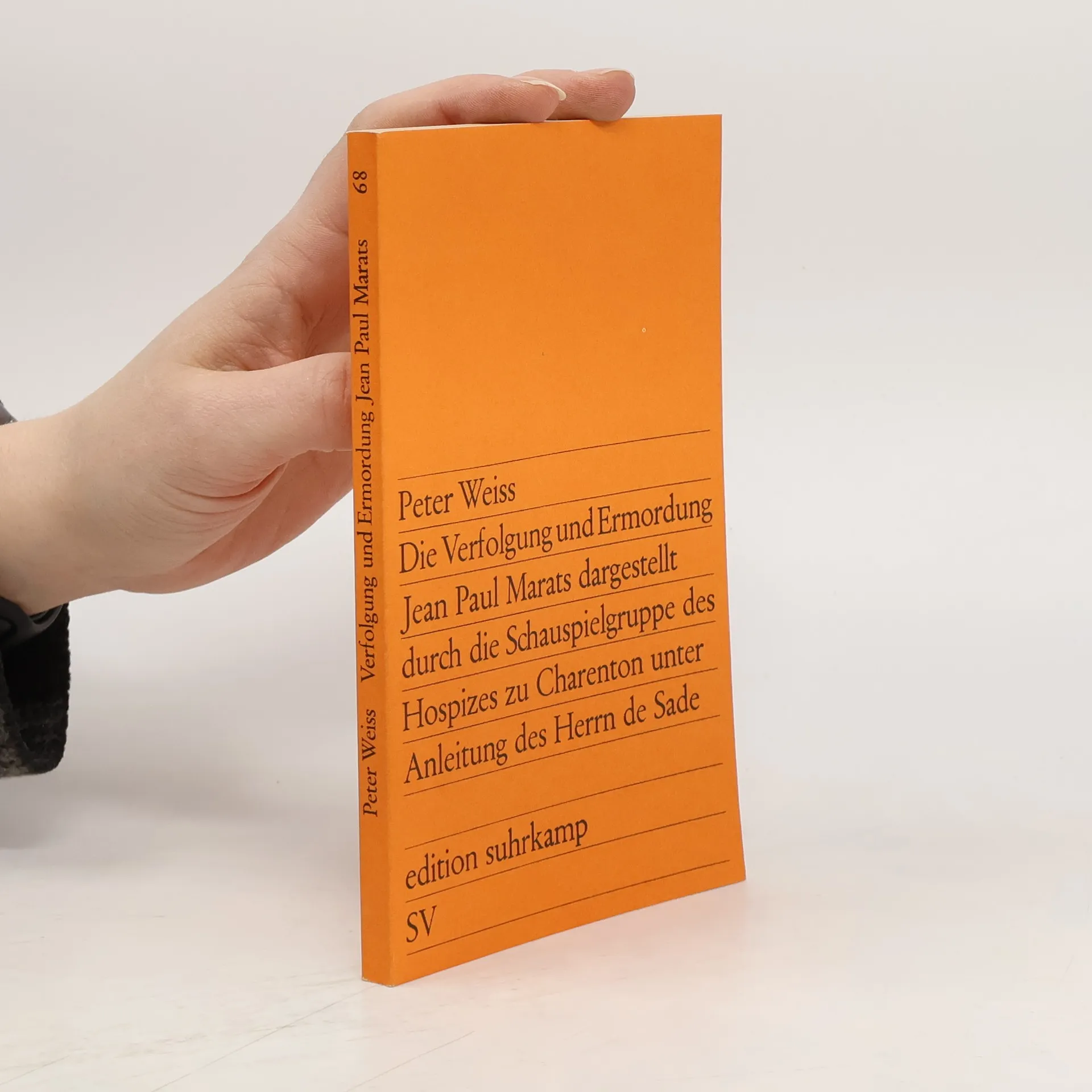 Actualmente hay del libro Die Verfolgung und Ermordung Jean Paul Marats dargestellt durch die Schauspielgruppe des Hospizes zu Charenton unter Anleitung des Herrn de Sade (1994) en stock.