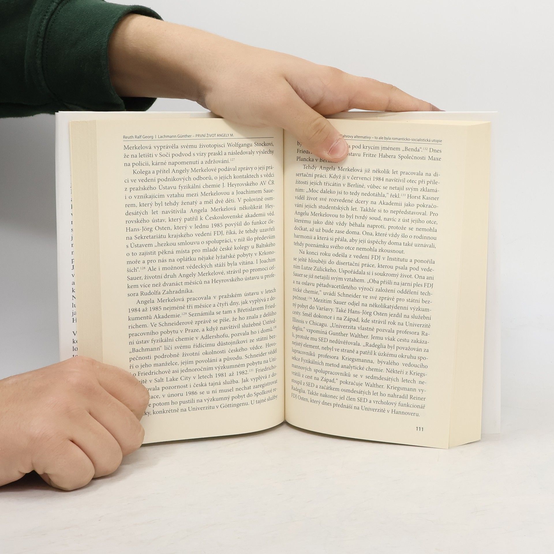 Na základě dokumentů a rozhovorů s dobovými svědky se autorům podařilo vylíčit život Angely Merkelové v novém světle a ukázat, že představa, která doposud přetrvává o jejích 35 letech života v NDR, neodpovídá realitě. Nebyla ani apolitickou vědkyní, ani její srdce netlouklo pro jednotu Německa. Ambiciózní a k systému loajální fyzička patřila k vědecké elitě státu SED, formované pod sovětským vlivem, a zasazovala se o demokratický socialismus. Vskutku pozoruhodná výchozí pozice pro pozdější spolkovou kancléřku a předsedkyni CDU.
