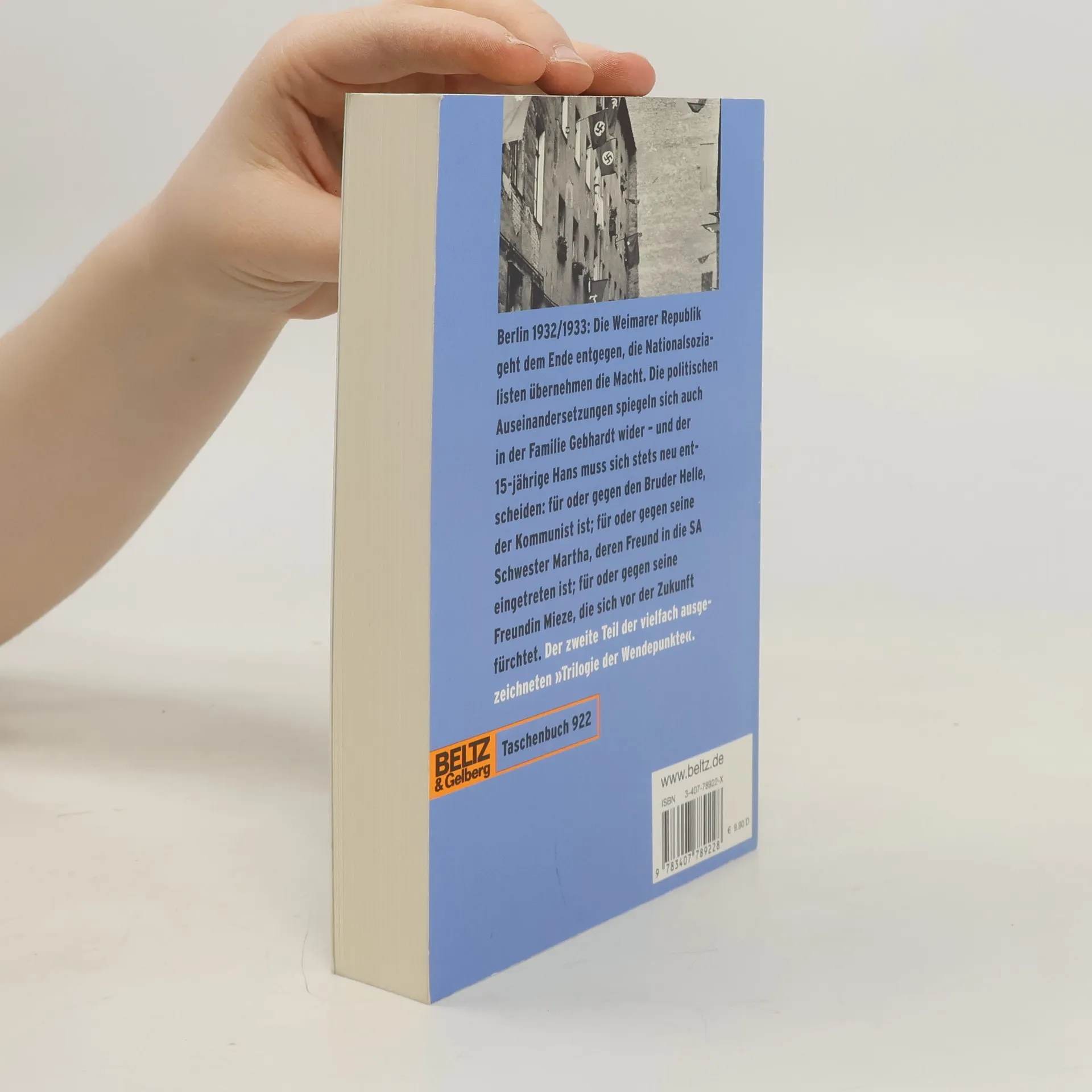 *Der zweite Teil der >Trilogie der Wendepunkte. Berlin (1932/33). Wohnungselend und Arbeitslosigkeit haben ihren Höhepunkt erreicht. In dieser Zeit lebt Hans Gebhardt, fünfzehn Jahre alt, begeisterter Turner, Hinterhofkind. Berlin 1932/1933: Die Weimarer Republik geht dem Ende entgegen, die Nationalsozialisten übernehmen die Macht. Der 15-jährige Hans muss sich immer wieder entscheiden: für oder gegen den Bruder Helle, der Kommunist ist; für oder gegen seine Schwester Martha, deren Freund in die SA eingetreten ist; für oder gegen seine Freundin Mieze, die sich vor der Zukunft fürchtet. Zürcher Jugendbuchpreis La vache qui lit