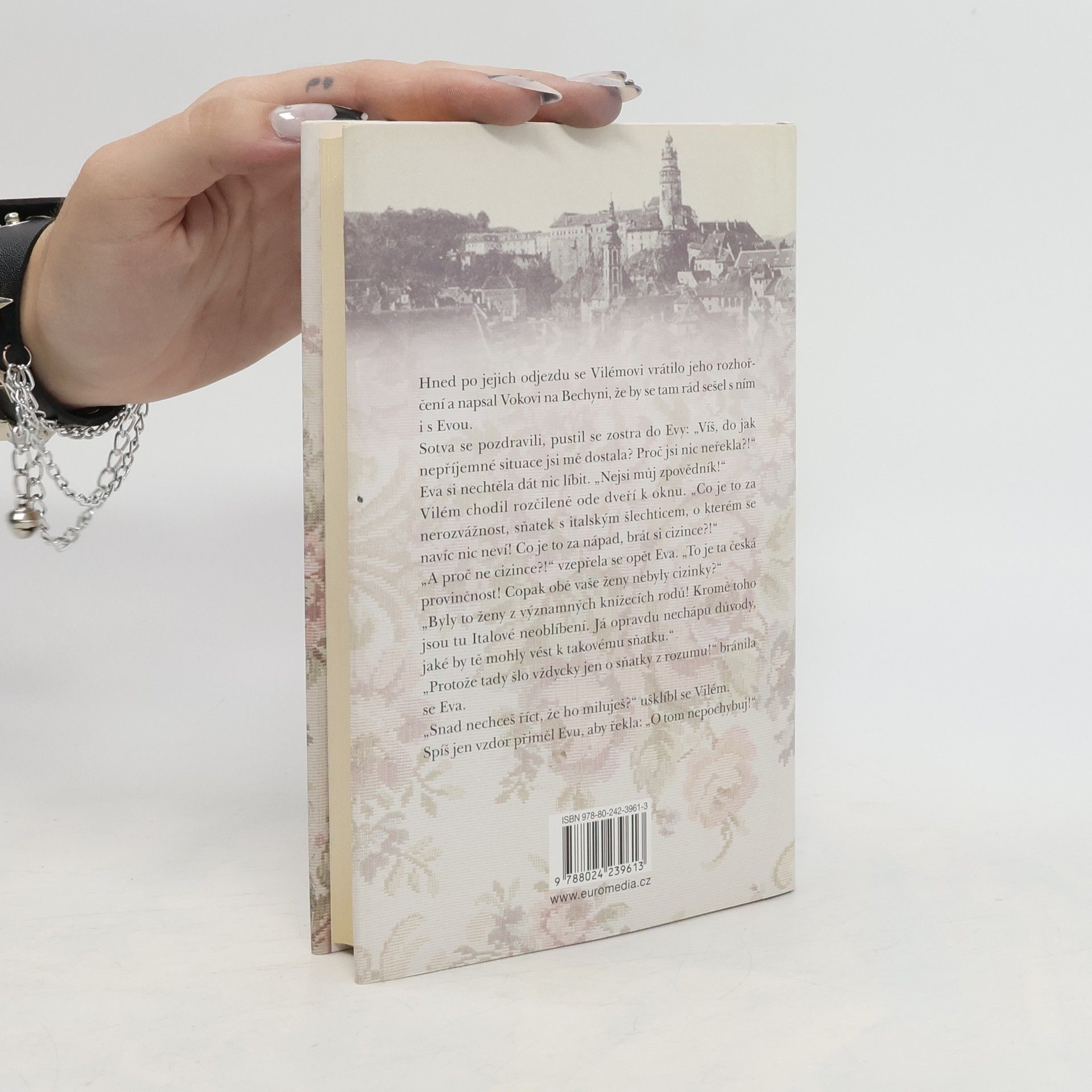 Nový román našeho předního autora líčí pohnutý, mnohdy dramatický životní osud Evy z Rožmberka, sestry Petra Voka a vladaře Viléma z Rožmberka. Poznáváme životní osudy této zajímavé a nezávislé ženy od jejích pěti let až do smrti v italské Mantově. Děj se převážně odehrává v jižních Čechách, na panství v Krumlově, Rožmberku, Hradci a Bechyni. Nakrátko příběh zavede čtenáře do chorvatského Čakovce a v závěru také do Itálie.
