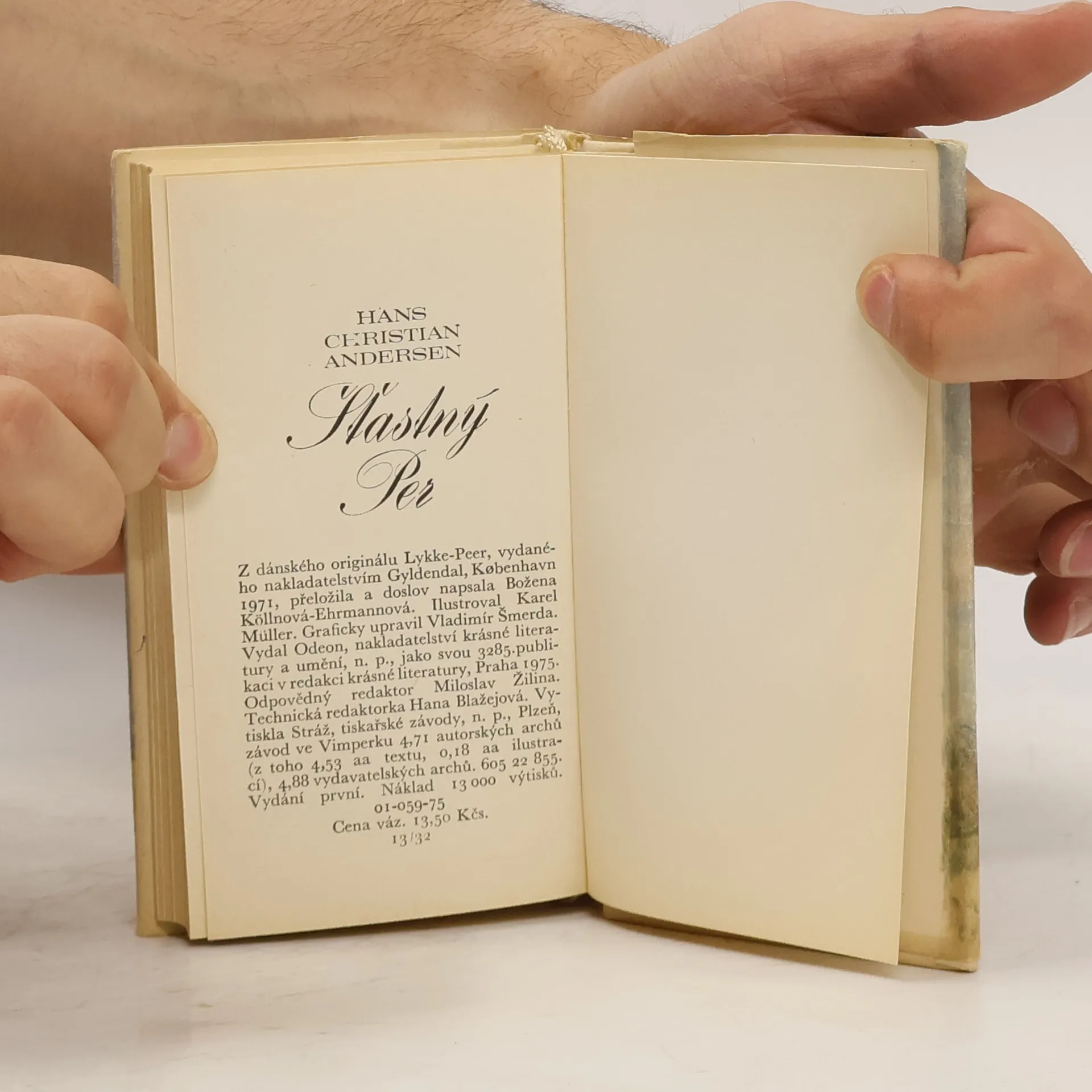 Hans Christian Andersen je známý především jako autor mnoha desítek pohádek. Ke konci života napsal idylický pohádkový příběh o Šťastném Perovi, v němž se vrátil k vlastnímu dětství a jeho snům. Perovi dal prožít - a spolu s ním ve fantazii jistě také prožíval - osud, jakého se chtěl sám jako dospívající hoch a pak už začínající autor dočkat, život slavného pěvce a hudebníka. Proto je v něm Per šťastlivcem, jemuž od samého, třeba chudého dětství nahrává náhoda i dobří lidé. Je-li Andersenův útlý román tou dětskou touhou určen a svým názvem také výmluvně předznamenán, stejně tak ho prostupuje vlídné hřejivé ovzduší a lidé, s nimiž má Per vztah důvěrného srozumění. Je to svět procítěný skrze vzpomínky z dětství a naplněným jeho bezpečně umístěným inventářem - kupeckými dvory, truhlami, punčem, mašlemi a kvetoucími štěpnicemi: a kolem je opsán magický kruh, jímž neproniknou větry ani blesky. 1. vydání.