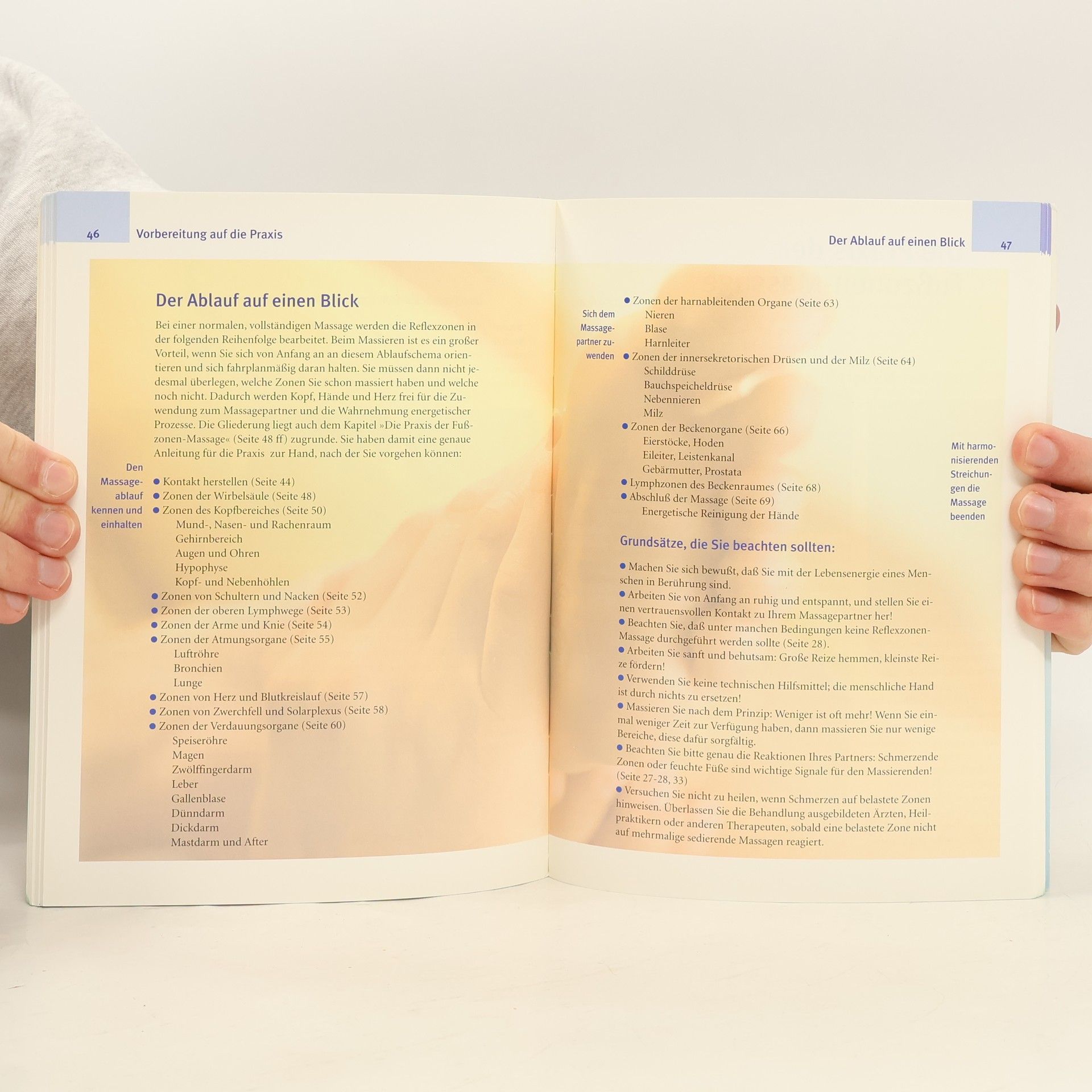 Der ganze Körper und seine Organe spiegeln sich in speziellen Zonen auf den Füßen wider. Das Massieren dieser Reflexzonen ist eine einfache, aber sehr wirksame Methode zur Vorbeugung und Behandlung von alltäglichen Beschwerden. Dafür kann man sich von einem Partner behandeln lassen oder selbst ¿Hand anlegen¿. Mit Hilfe der Reflexzonen-Massage werden Blockaden einfach gelöst, Spannungen abgebaut und körpereigene Heilkräfte mobilisiert. Der Kompass führt in die Grundlagen ein und zeigt die verschiedenen Grifftechniken. Genaue, farbige Illustrationen ergänzen die kompakten Anleitungen im Beschwerdeteil, so dass sich der Ablauf der Massage leicht und schnell nachvollziehen und umsetzen lässt.