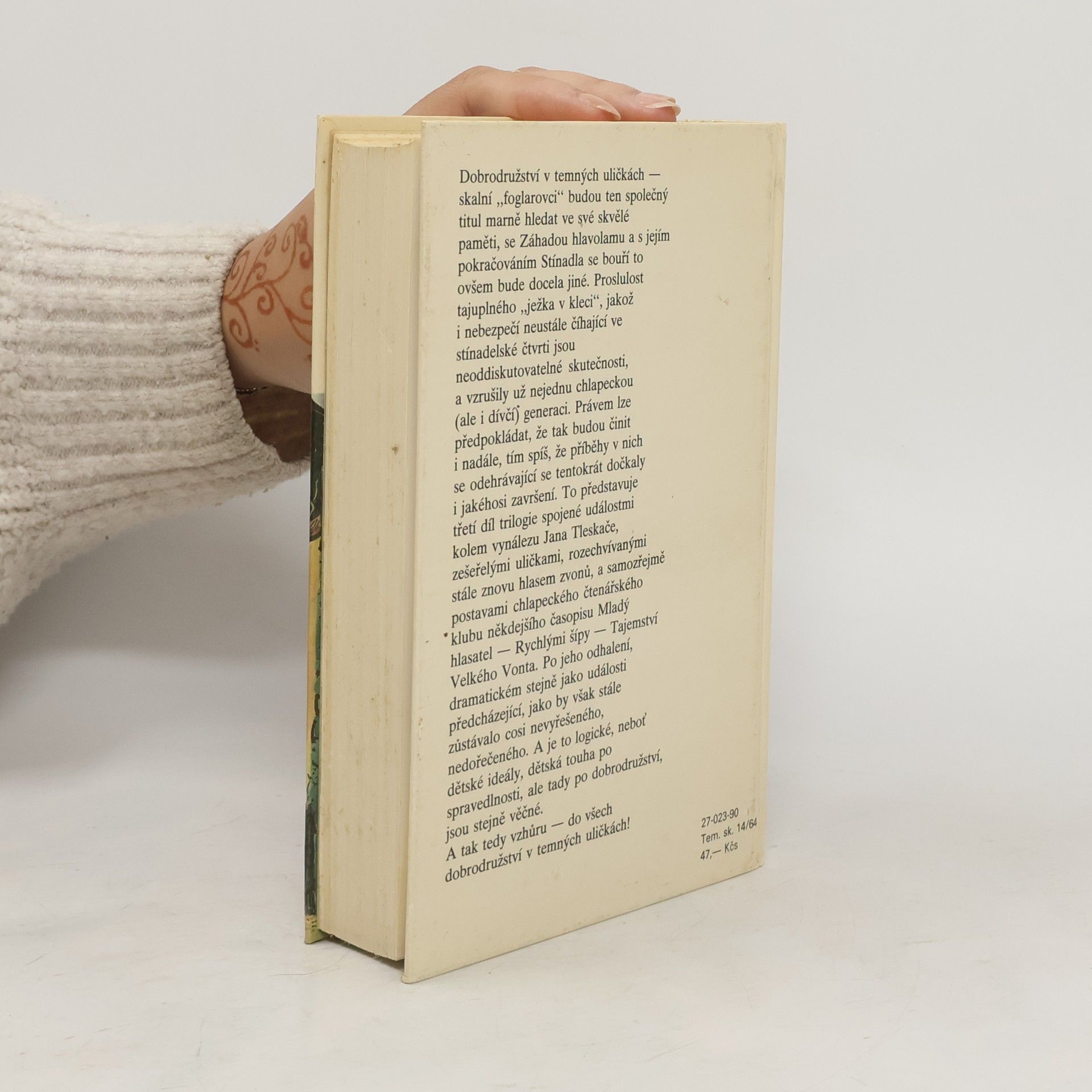 Dobrodružství v temných uličkách - skalní "foglarovci" budou ten společný titul marně hledat ve své skvělé paměti, se Záhadou hlavolamu a s jejím pokračováním Stínadla se bouří to ovšem bude docela jiné. Proslulost tajuplného "ježka v kleci", jakož i nebezpečí neustále číhající ve stínadelské čtvrti jsou neoddiskutovatelné skutečnosti, a vzrušily už nejednu chlapeckou (ale i dívčí) generaci. Právem lze předpokládat, že tak budou činit i nadále, tím spíš, že příběhy v nich se odehrávající se tentokrát dočkaly i jakéhosi završení.To představuje třetí díl trilogie spojené událostmi kolem vynálezu Jana Tleskače, zešeřelými uličkami, rozechvívanými stále znovu hlasem zvonů, a samozřejmě postavami chlapeckého čtenářského klubu někdejšího časopisu Mladý hlasatel - Rychlými šípy - Tajemství Velkého Vonta. Po jeho odhalení, dramatickém stejně jako události předcházející, jako by však stále zůstávalo cosi nevyřešeného, nedořečeného. A je to logické, neboť dětské ideály, dětská touha po spravedlnosti, ale tady po dobrodružství, jsou stejně věčné. A tak tedy vzhůru - do vše dobrodružství v temných uličkách! 1/ Záhada hlavolamu 2/ Stínadla se bouří 3/ Tajemství Velké Vonta