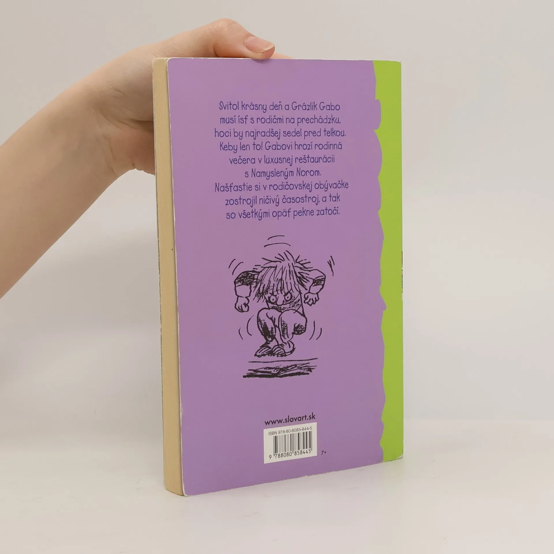 Svitol krásny slnečný deň a Grázlik Gabo musí ísť s rodičmi na prechádzku, hoci by najradšej sedel pred telkou. Keby len to! Gabovi hrozí rodinná večera v luxusnej francúzskej reštaurácií s horenosom Namysleným Norom, navyše veľa nechýbalo a bol by obeťou krutej pomsty svojho mladšieho brata. Našťastie si v rodičovskej obývačke zostrojil ničivý časostroj, a tak so všetkými opäť pekne zatočí. Dvanáste pokračovanie príbehov o Grázlikovi Gabovi, zábavné čítanie pre deti aj dospelákov.