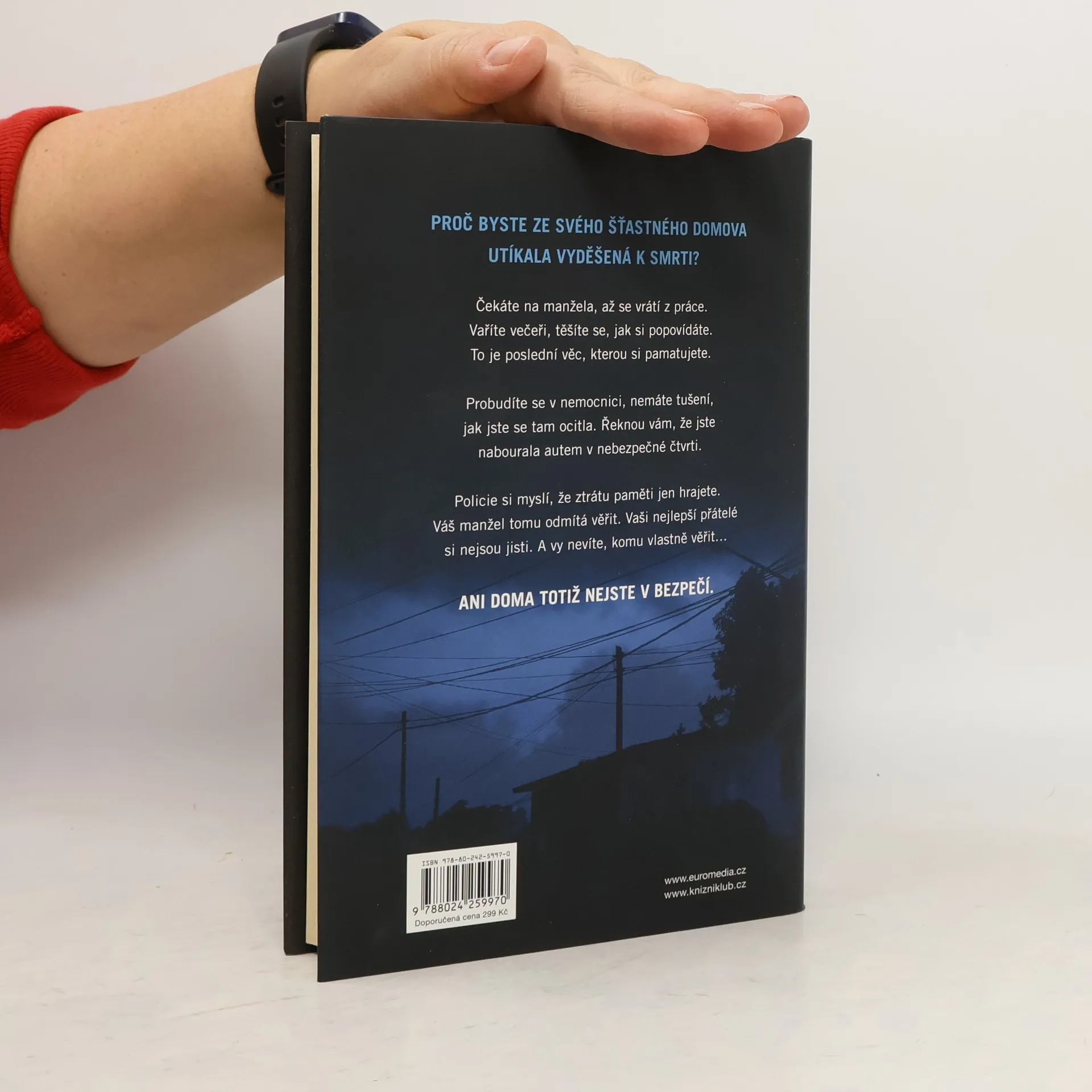 V téhle útulné čtvrti spokojených domovů zůstávají nebezpečné lži uzavřeny za dveřmi… Shari Lapena, autorka thrilleru roku 2017 Manželé odvedle, přichází s dalším rodinným dramatem plným tajemství a nečekaných zvratů, které nikdy nepřestanou překvapovat. Karen a Tom Kruppovi jsou šťastní – vzali se teprve nedávno a vlastní nádherný dům poblíž New Yorku. Jednoho dne se Tom vrátí domů a zjistí, že Karen zmizela – její auto je pryč a zdá se, že odjela ve spěchu. Nevzala si dokonce ani kabelku, telefon, doklady. Krátce nato se Tom dozví, že Karen měla nehodu a leží v nemocnici s otřesem mozku a ztrátou paměti. Po čase se Karen, odhodlaná vyléčit se a zapomenout, vrací s Tomem domů. Ale zdá se, že se tam něco změnilo. Něco není v pořádku. Někdo tam byl. Někdo cizí. Jenže v tomhle domě je každý cizí. Každý má něco, co by podle něj mělo zůstat skryto. Něco, kvůli čemu by raději vraždil, jen aby si to mohl nechat pro sebe...