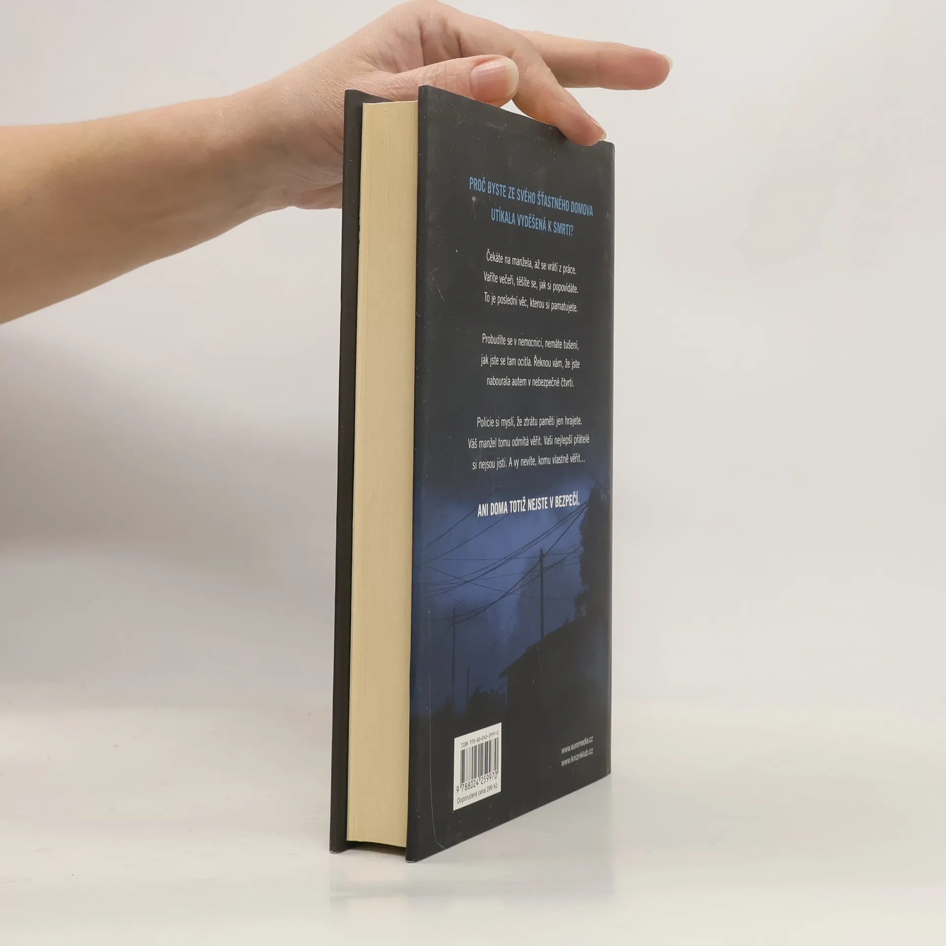 V téhle útulné čtvrti spokojených domovů zůstávají nebezpečné lži uzavřeny za dveřmi… Shari Lapena, autorka thrilleru roku 2017 Manželé odvedle, přichází s dalším rodinným dramatem plným tajemství a nečekaných zvratů, které nikdy nepřestanou překvapovat. Karen a Tom Kruppovi jsou šťastní – vzali se teprve nedávno a vlastní nádherný dům poblíž New Yorku. Jednoho dne se Tom vrátí domů a zjistí, že Karen zmizela – její auto je pryč a zdá se, že odjela ve spěchu. Nevzala si dokonce ani kabelku, telefon, doklady. Krátce nato se Tom dozví, že Karen měla nehodu a leží v nemocnici s otřesem mozku a ztrátou paměti. Po čase se Karen, odhodlaná vyléčit se a zapomenout, vrací s Tomem domů. Ale zdá se, že se tam něco změnilo. Něco není v pořádku. Někdo tam byl. Někdo cizí. Jenže v tomhle domě je každý cizí. Každý má něco, co by podle něj mělo zůstat skryto. Něco, kvůli čemu by raději vraždil, jen aby si to mohl nechat pro sebe...