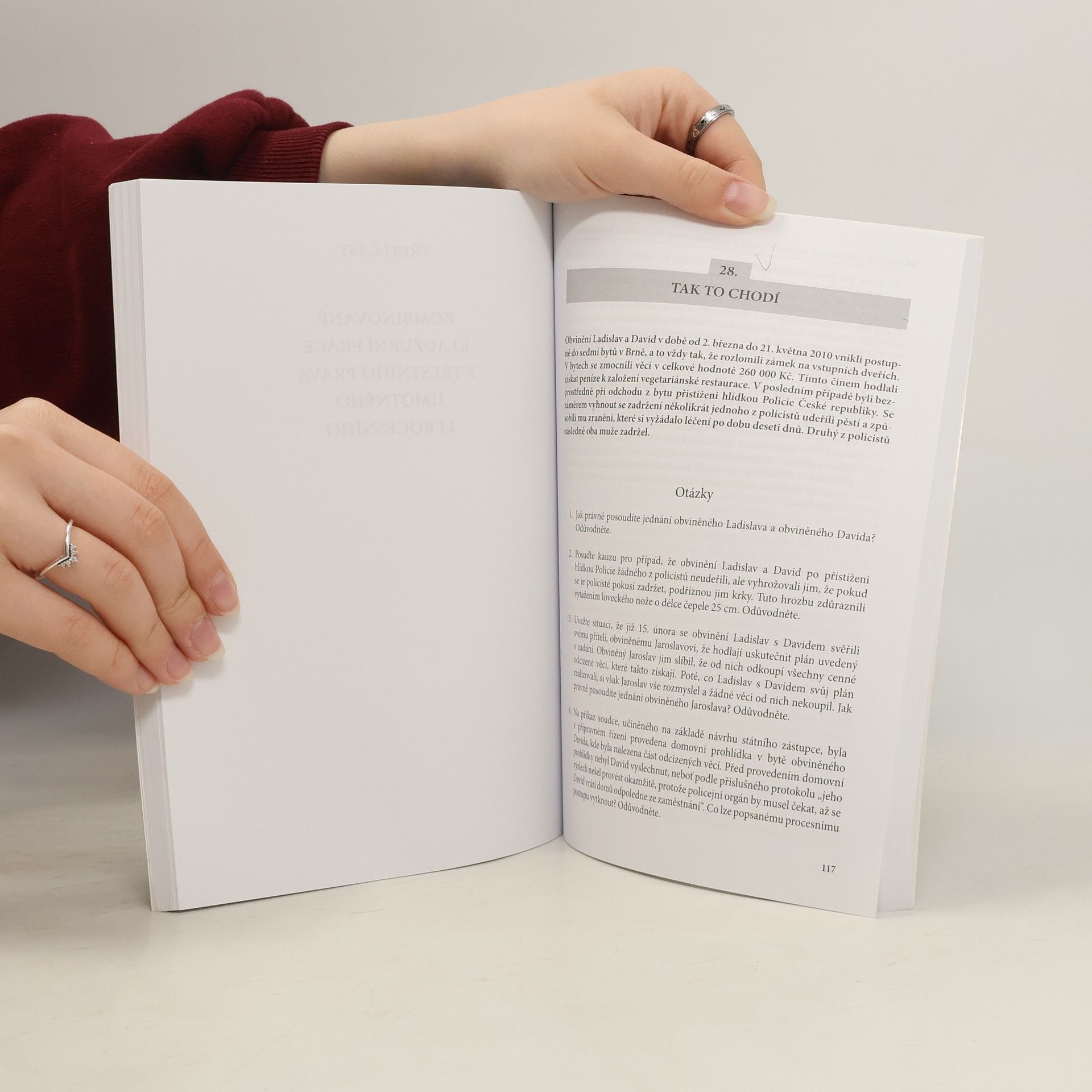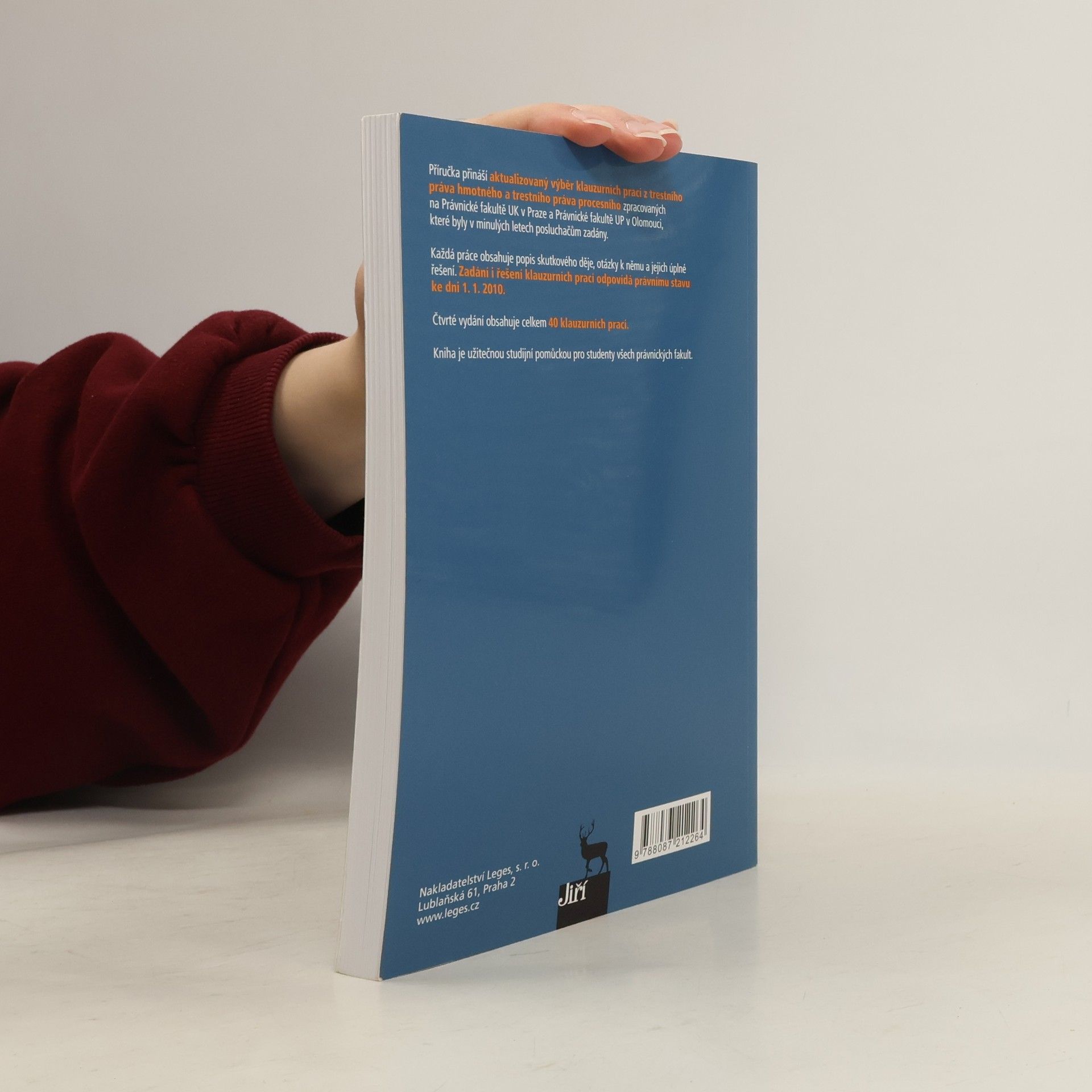 Příručka přináší aktualizovaný výběr klauzurních prací z trestního práva hmotného a trestního práva procesního zpracovaných na Právnické fakultě UK v Praze a Právnické fakultě UP v Olomouci, které byly v minulých letech posluchačům zadány. Každá práce obsahuje popis skutkového děje, otázky k němu a jejich úplné řešení. Zadání i řešení klauzurních prací odpovídá právnímu stavu ke dni 1. 1. 2010. Čtvrté vydání obsahuje celkem 40 klauzurních prací. Kniha je užitečnou studijní pomůckou pro studenty všech právnických fakult.