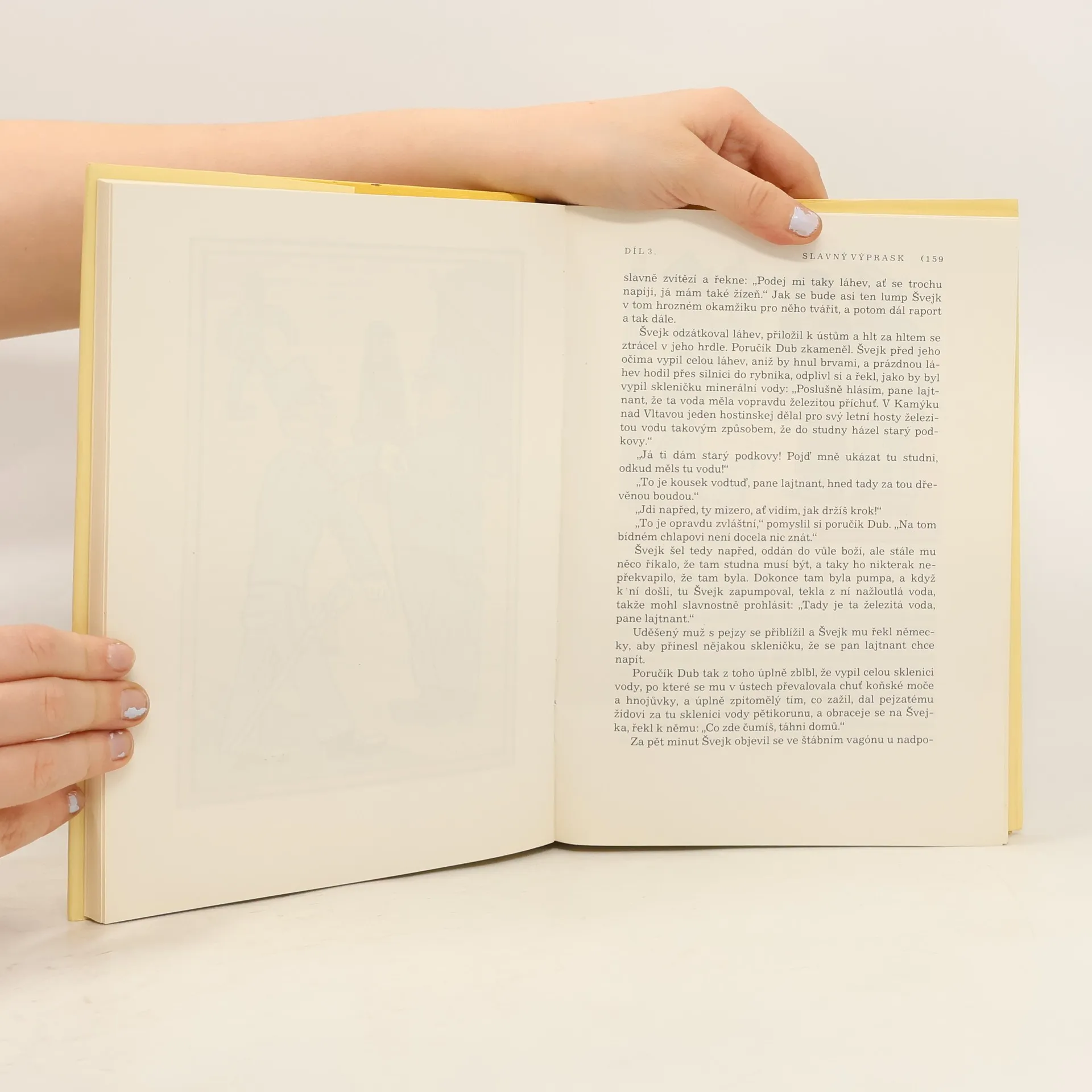 Slavný výprask - 91. pěší pluk je opět naložen do vlaku, který jej veze jako „novou skupinu lidí hnaných na jatky“ do Haliče na ruskou frontu. Hašek tuto pouť přes celé Uhry popisuje tak, že se román stává skutečnou obžalobou války a stupidních důstojníků, kterým nejde o nic jiného než o vlastní prospěch bez ohledu na osudy vojáků, kterým mají velet. Jejich schopnosti Hašek popisuje takto: „Byl to pán velkých vojenských schopností, které se mu vrazily do nohou ve formě podágry“. Názory prostých vojáků na válku charakterizuje Hašek slovy: „Po celou dobu železniční přepravy bataliónu, který měl sklízet válečnou slávu, až projde pěšky od Laborce východní Haličí na front, vedly se ve vagónu, kde byl jednoroční dobrovolník a Švejk, opět podivné řeči, víceméně velezrádného obsahu“. Na konci dílu je Švejk vyslán jako kvartýrmachr zajistit pro svou kumpanii nocleh ve Felštýně. Když Švejk dojde k malému rybníku, setká se tam s uprchlým ruským zajatcem, který se tam koupal a po spatření Švejka se dal nahý na útěk. Švejk si oblékne jeho uniformu, protože je zvědav, jak by mu asi slušela. V této uniformě ho najde patrola polního četnictva, která tohoto ruského uprchlíka hledala. Jsou to Maďaři, kteří Švejkovi nerozumí a přes jeho protesty ho zařadí do transportu ruských zajatců určených pracovat na opravě železniční trati. Tak Švejk upadne omylem do rakouského zajetí. Pokračování slavného výprasku - Poté, co je zjištěno, že Švejk je Čech, je na něj pohlíženo jako na zběha a polní soud ho odsoudí k smrti. Duchovní útěchu před popravou mu má poskytnout polní kurát Martinec, původně skutečně nábožensky založený muž, který stykem s opilými důstojníky postupně mravně upadá, což si nepřestává v skrytu duše neustále vyčítat. Švejk jej však považuje za dalšího vězně a svými proslovy jej tak vyděsí, že Martinec z cely prchne na důstojnický večírek, kde se zpije do bezvědomí „s přesvědčením, že se hraje o jeho duši a on sám že je mučedníkem“. Nakonec se vše vysvětlí a Švejk se opět ocitne u své marškumpanie. Haškův text pak končí proslovem poručíka Duba „S okresním hejtmanem jsme vždy říkávali: Patriotismus, věrnost k povinnosti, sebepřekonání, to jsou ty pravé zbraně ve válce! Připomínám si to zejména dnes, když naše vojska v dohledné době překročí hranice“. Vše, co případně v knize následuje za touto větou, je pokračování dopsané od Karla Vaňka.