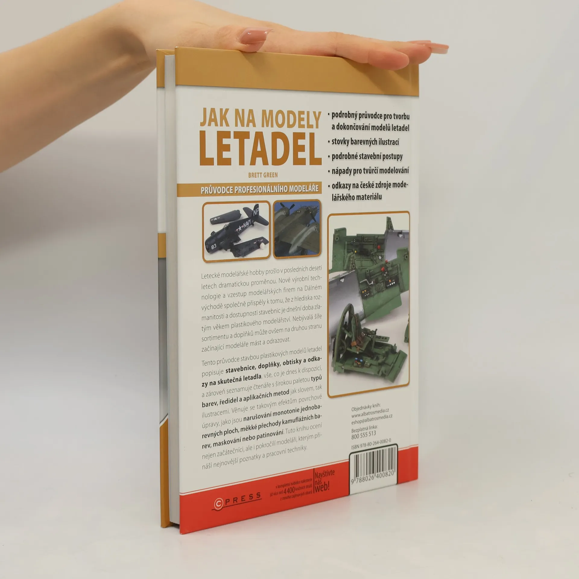 Tento průvodce stavbou plastikových modelů letadel vás postupně a přehledně provede jednotlivými druhy stavebnic, doplňky, obtisky i odkazy na skutečná letadla, vším, co je dnes k dispozici. Seznámí vás se širokou paletou typů barev, ředitel a aplikačních metod jak slovem, tak ilustracemi. Věnuje se takovým efektům povrchové úpravy, jako je narušování monotonie jednobarevných ploch, měkké přechody kamuflážních barev, maskování nebo patinování.