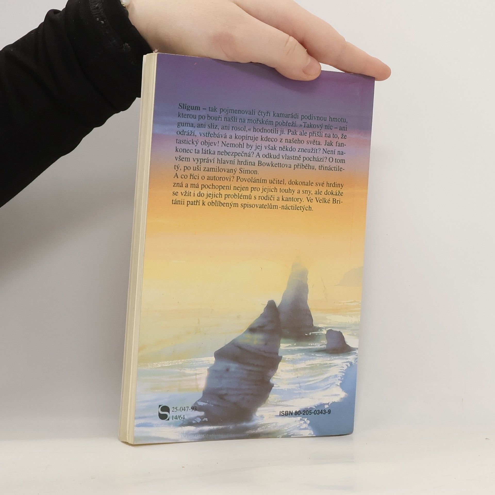 Sligum - tak pojmenovali čtyři kamarádi podivnou hmotu, kterou po bouři našli na mořském pobřeží. ,,Takový nic, ani guma, ani sliz, ani rosol," hodnotili ji. Pak ale přišli na to, že odráží, vstřebává a kopíruje kdeco z našeho světa. Jak fantastický objev! Nemohl by jej však někdo zneužít? Není nakonec ta látka nebezpečná? A odkud vlastně pochází? O tom všem vypráví hlavní hrdina Bowkettova příběhu, třináctiletý, po uši zamilovaní Simon.
