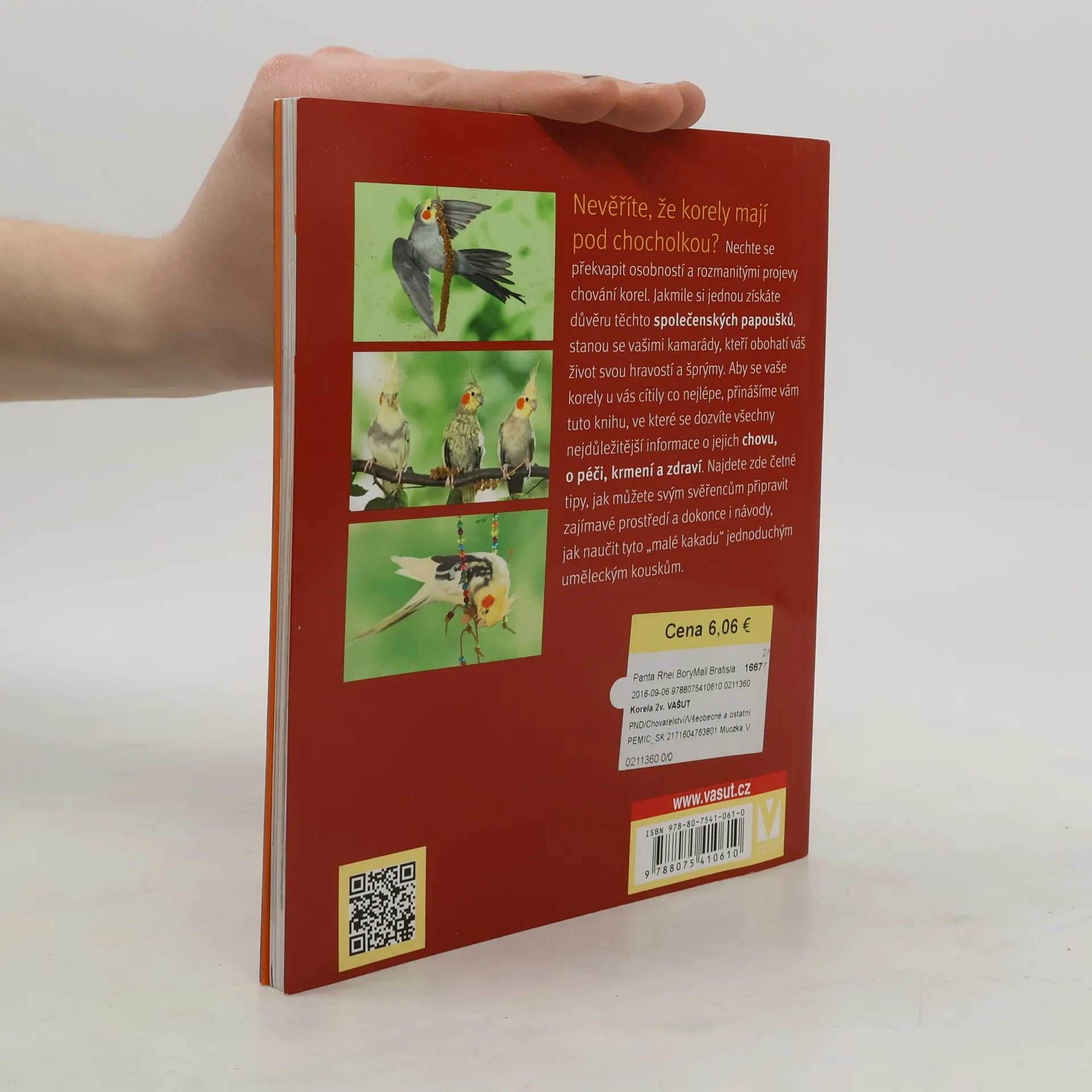 Nevěříte, že korely mají pod chocholkou? Nechte se překvapit osobností a rozmanitými projevy chování korel. Jakmile si jednou získáte důvěru těchto společenských papoušků, stanou se vašimi kamarády, kteří obohatí váš život hravostí a šprýmy. Autorka této příručky ví velmi dobře, jaké informace coby amatérští chovatelé potřebujete znát, aby se vašim svěřencům dařilo co nejlépe. Najdete tu vše potřebné: Kde a jak si vybrat korely, jak je přivyknout na nové prostředí, co jim chutná a jak pečovat o jejich zdraví a rozvíjet jejich schopnosti. K tomu navíc rady, jak můžete svým svěřencům připravit zajímavé prostředí a dokonce i návody, jak naučit tyto „malé kakadu“ jednoduchým uměleckým kouskům.