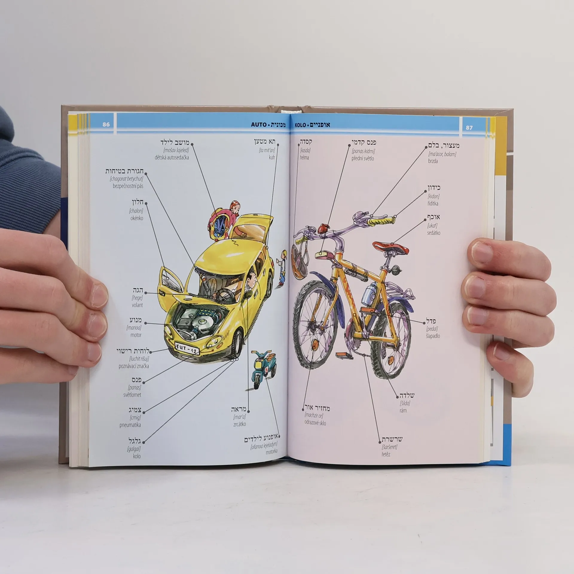 Obrázkový slovník používaných hebrejských slov, vět a frází.