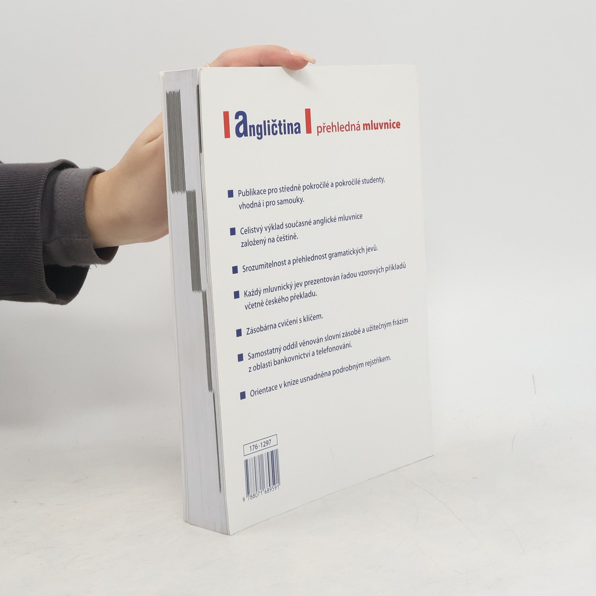 Publikace pro středně pokročilé a pokročilé studenty, vhodná i pro samouky, podává celistvý, srozumitelný a přehledný výklad současné anglické mluvnice založený na češtině. Každý mluvnický jev je prezentován řadou vzorových příkladů včetně českého překladu. Samostatný oddíl je věnován slovní zásobě a užitečným frázím z oblasti bankovnictví a telefonování. Orientace v knize usnadněna podrobným rejstříkem. Text byl prověřen rodilými mluvčími i českými učiteli.