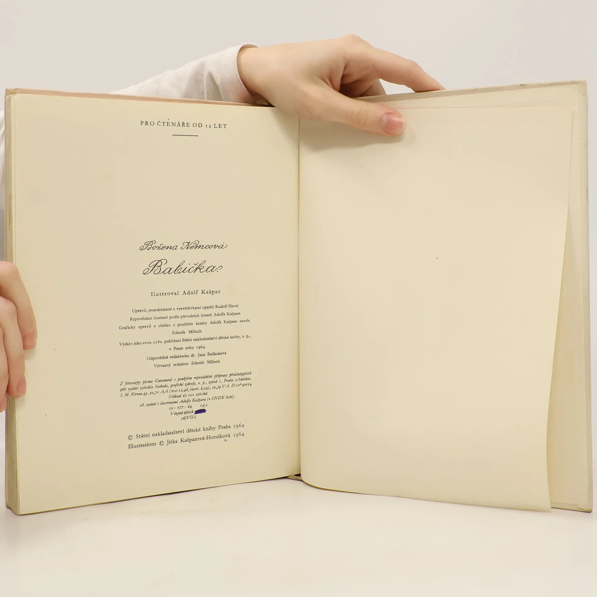 Obrazy venkovského života. Nejznámější prózu Boženy Němcové jistě netřeba blíže představovat - patří k nejčtenějším českým knihám. Poprvé vyšla v roce 1855 a od té doby byla publikována ve více než třech stovkách českých vydání a v mnoha zahraničních překladech. Své vzpomínky na dětství, prožité v ratibořickém údolí s babičkou Magdalénou Novotnou autorka přetavila do částečně idealizované, ale přesto realistické podoby. Ilustroval Adolf Kašpar.