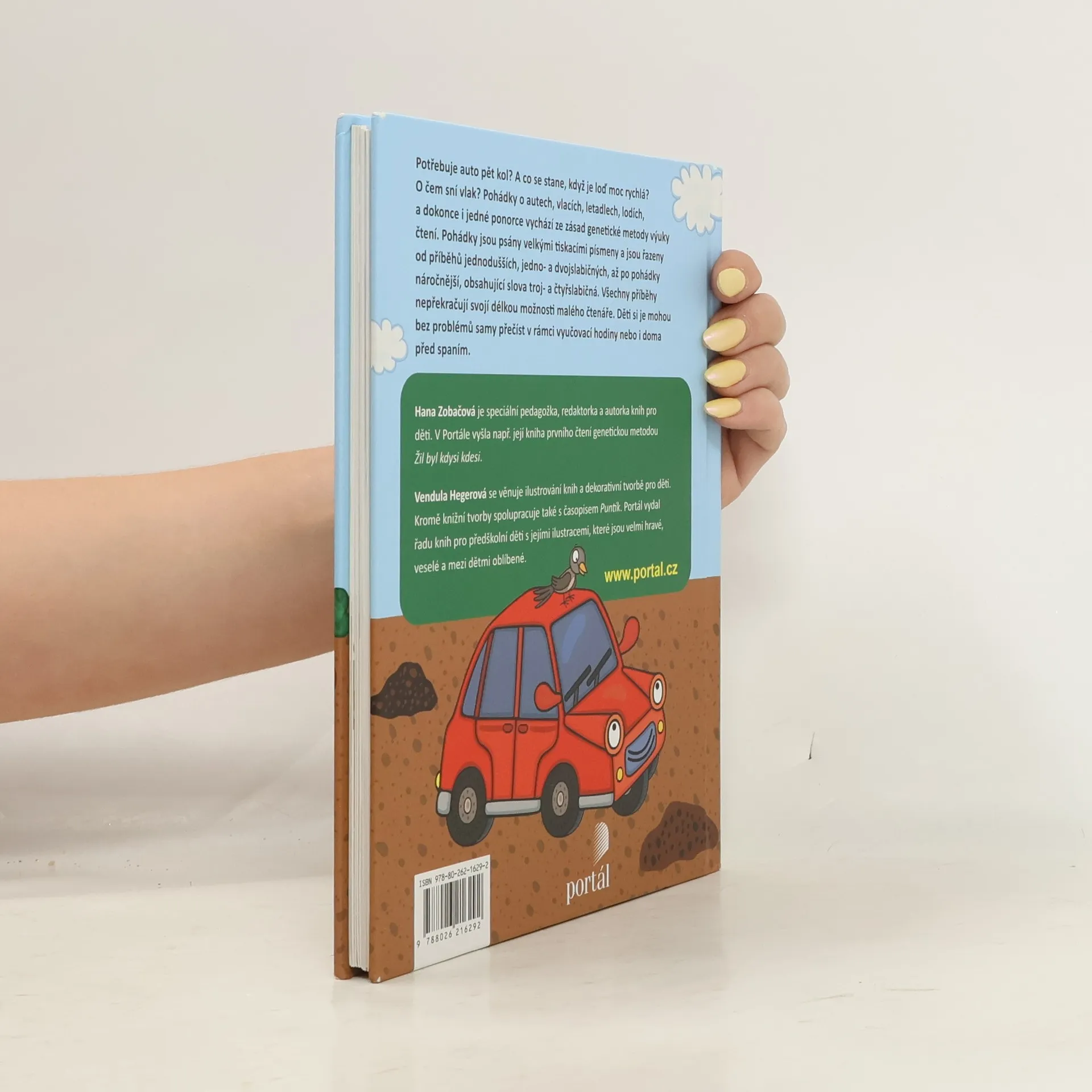 Potřebuje auto pět kol? A co se stane, když je loď moc rychlá? O čem sní vlak? Pohádky o autech, vlacích, letadlech, lodích a dokonce i jedné ponorce vychází ze zásad genetické metody výuky čtení. Pohádky jsou psány velkými tiskacími písmeny a jsou řazeny od příběhů jednodušších, jedno a dvojslabičných, až po pohádky náročnější, obsahující slova troj- a čtyřslabičná. Všechny příběhy nepřekračují svojí délkou možnosti malého čtenáře. Děti si je mohou bez problémů samy přečíst v rámci vyučovací hodiny nebo i doma před spaním.