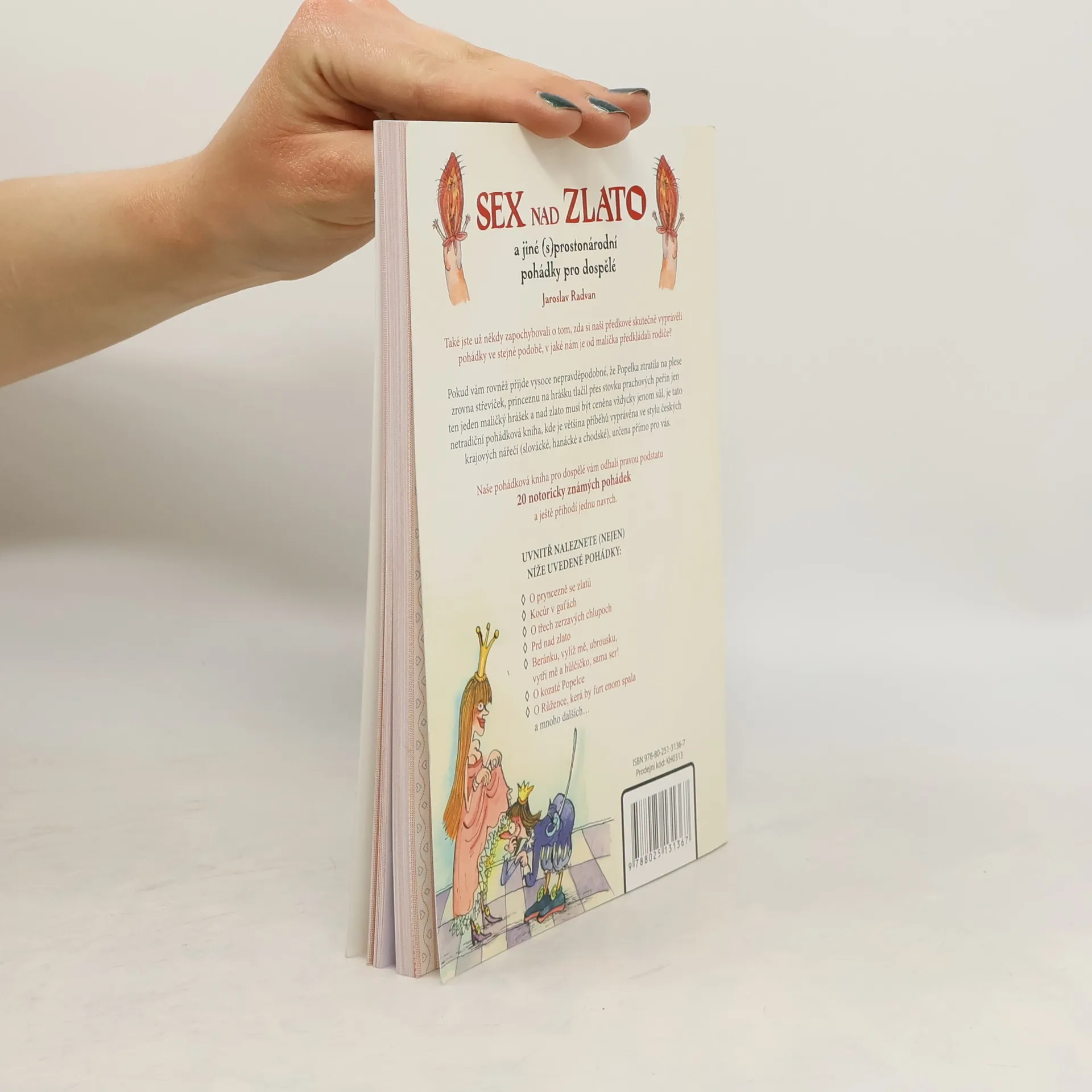 Podtitulek zní : a jiné (s)prostonárodní pohádky pro dospělé Také jste už někdy zapochybovali o tom, zda si naši předkové vyprávěli pohádky ve stejné podobě, v jaké nám je odmalička předkládali rodiče? Pokud vám rovněž přijde vysoce nepravděpodobné, že Popelka ztratila na plese zrovna střevíček, princeznu na hrášku tlačil přes stovku prachových peřin jen ten jeden maličký hrášek a nad zlato musí být ceněna vždycky jenom sůl, je tato netradiční pohádková kniha určena přímo pro vás. (a jiné (s)prostonárodní pohádky pro dospělé)
