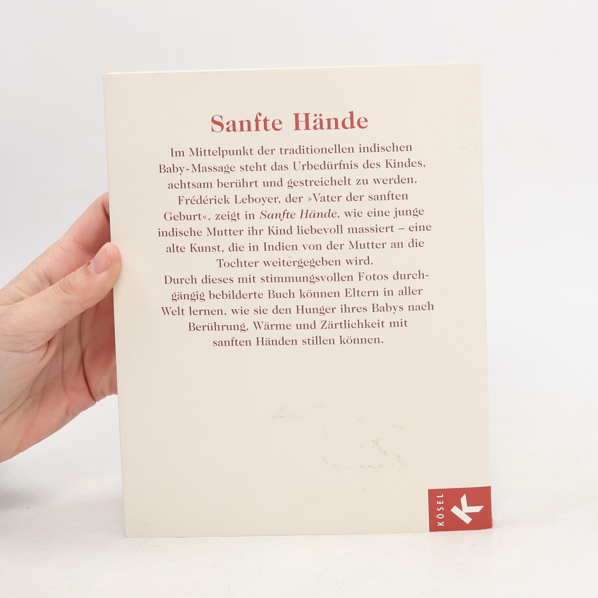 Die Berührung ist die Wurzel. Und so sollten wir mit ihr auch umgehen.Wir müssen unsere Babys so nähren, dass sie wirklich satt werden, innen wie außen.Wir müssen zu ihrer Haut sprechen und zu ihrem Rücken, denn diese hungern und dürsten und schreien genauso wie ihr Bauch.Wir müssen sie mit Wärme und Zärtlichkeit genug und mehr als genug füttern. Denn das brauchen sie, so sehr wie Milch.Berührt, gestreichelt und massiert werden, das ist Nahrung für das Kind. Nahrung, die genauso wichtig ist wie Mineralien, Vitamine und Proteine. Nahrung, die Liebe ist. Ausstattung: Mit 66 s/w-Fotos