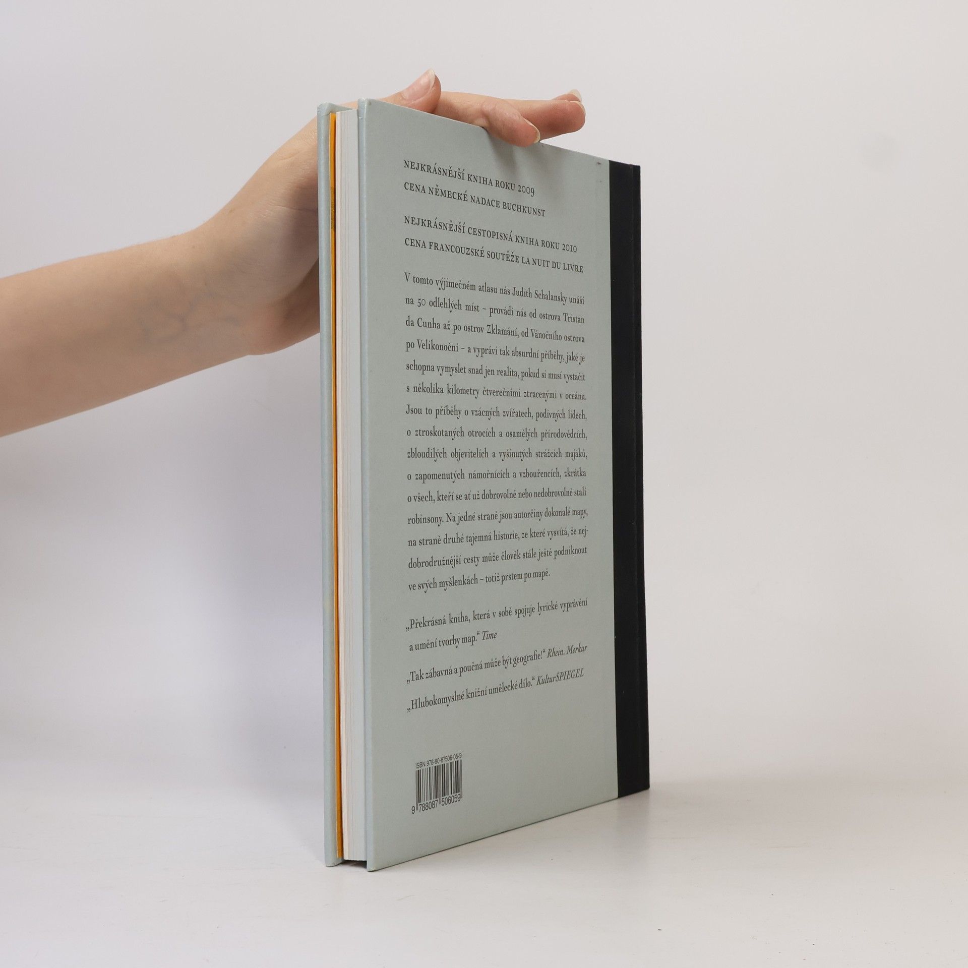 Podtitul: Padesát ostrovů, které jsem nikdy nenavštívila a nikdy nenavštívím Kdo otevře jednu z nejkrásnějších knih poslední doby, Atlas odlehlých ostrovů, může se ztratit světu jako Robinson Crusoe, cítit moře, slyšet příboj a racky, vidět ledovce a skály. A pod nohama jemný písek... V dnešním globalizovaném světě se zdá téměř nemožné, že ještě existují těžce dosažitelná místa. Přesto je Judith Schalansky našla: padesát odlehlých ostrovů, padesát teček ve světových oceánech, nesoucích pohádková jména jako ostrov Samoty, Pukapuka, Fangataufa nebo ostrov Zklamání. Autorka s lehkostí vypráví tak absurdní příběhy, jaké je schopna vymyslet snad jen realita omezená na několik kilometrů čtverečních ztracených kdesi v oceánu. Jsou to příběhy o vzácných zvířatech, podivných lidech, o ztroskotaných otrocích a osamělých přírodovědcích, zbloudilých objevitelích a vyšinutých strážcích majáku, o zapomenutých námořnících a vzbouřencích, příběhy o touze a odloučení…