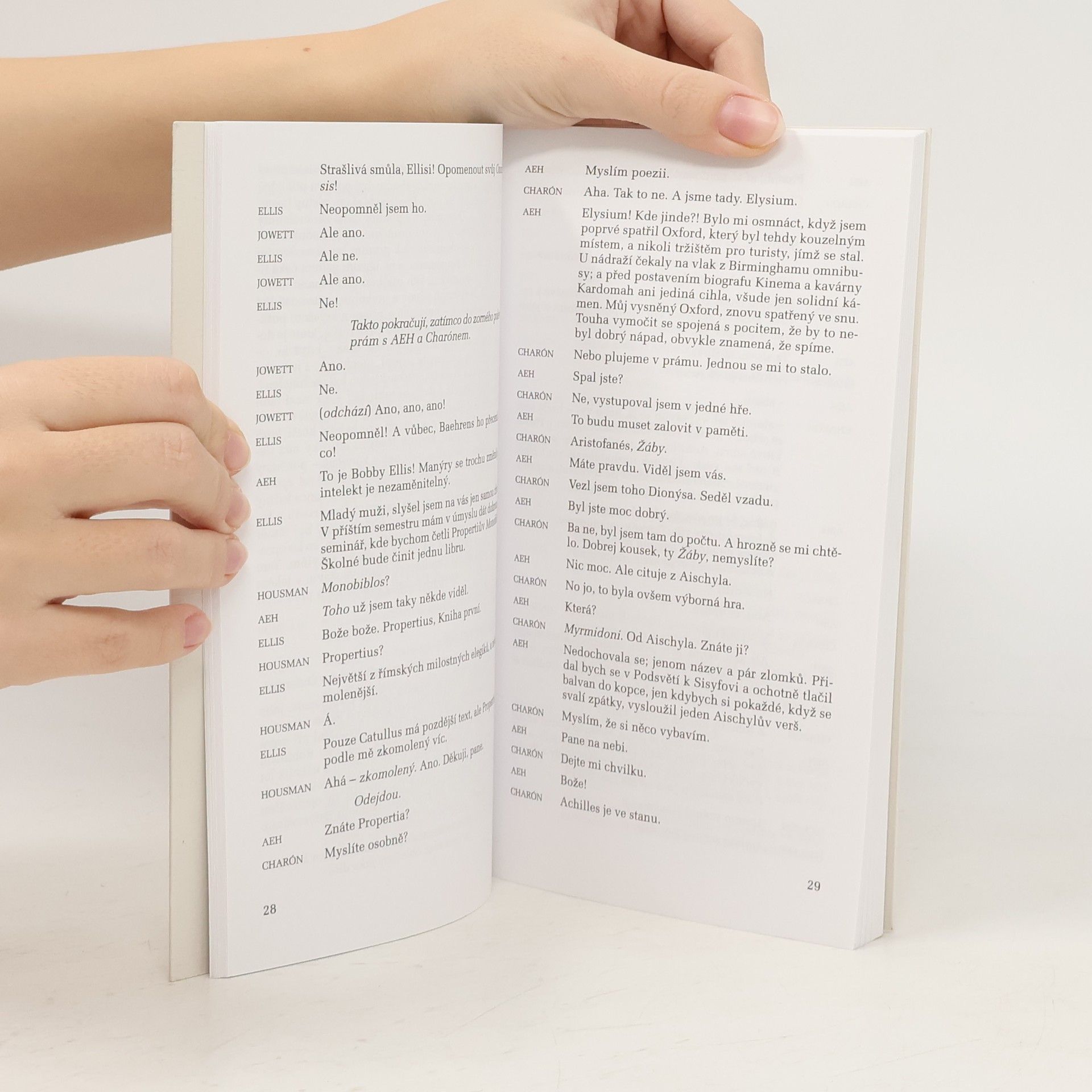 Hra britského dramatika Toma Stopparda Vynález lásky (The Invention of Love, 1997), považovaná za autorovo nejsložitější a zároveň nejlepší dílo, je lyricko-dramatickým esejem o životě a době Alfreda E. Housmana, viktoriánského klasického filologa a básníka, ale také o jeho vášnivé, byť platonické lásce k jeho spolužákovi. Děj je zdánlivě prostý – noc před smrtí se básníkovi zdá, že zemřel a že cestou v Charónově loďce potkává nejdůležitější postavy svého života, včetně svých mladších já. Řeka Styx takřka surrealisticky spojuje Podsvětí s Oxfordem Housmanova mládí a problémy překladů řecké a římské klasiky tu mají stejné místo jako ozvěny slavného procesu Oscara Wildea. Právě jeho osud tvoří protiklad k příběhu nenaplněného a potlačeného Housmanova citu, jehož energii básník vtěluje především do nenápadného vědeckého díla. Ve Stoppardově pojetí je láska nejen povznášející, ale také tragickou lidskou zkušeností. Zvláštnímu světu hry nakonec nechybí ani hořce paradoxní logika: ironií osudu to byl právě „laskavý humorista" Jerome K. Jerome, kdo svým otevřeným dopisem literárnímu časopisu rozpoutal aféru, jež vedla k Wildeově odsouzení k nuceným pracím za prokázanou homosexualitu. Doslov Lenka Kolihová Havlíková