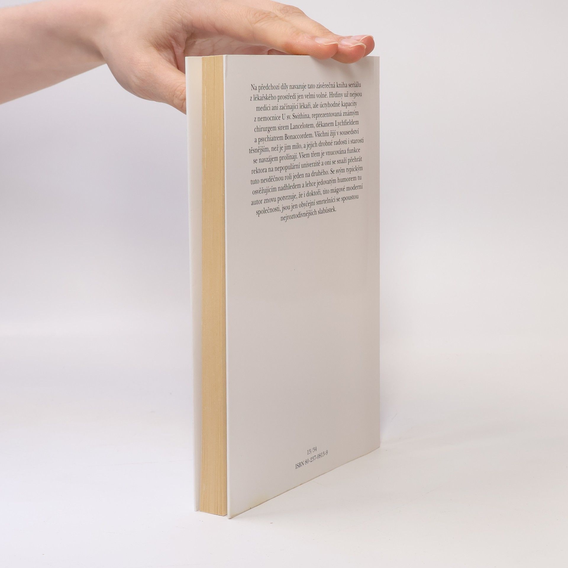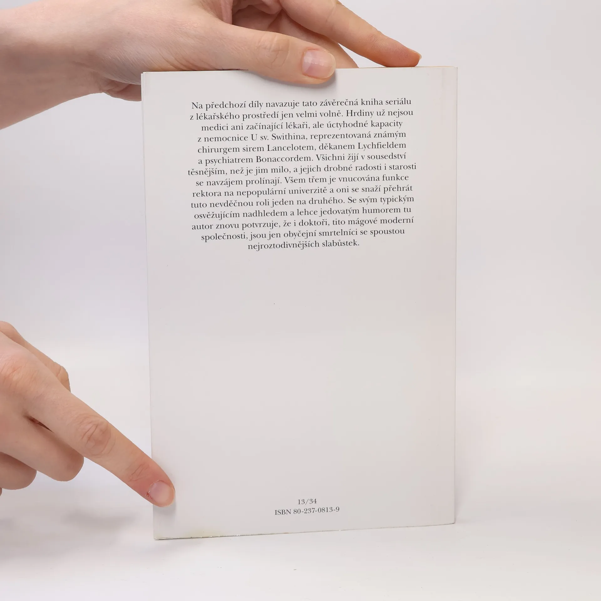 Další z doktorských příběhů. Hrdiny už nejsou medici ani začínající lékaři, ale úctyhodné kapacity z nemocnice U sv. Swithina, reprezentovaná známým chirurgem sirem Lancelotem, děkanem Lychfieldem a psychiatrem Bonaccordem. Se svým typickým osvěžujícím nadhledem a lehce jedovatým humorem tu autor znovu potvrzuje, že i doktoři jsou jen obyčejní smrtelníci se spoustou nejroztodivnějších slabůstek.