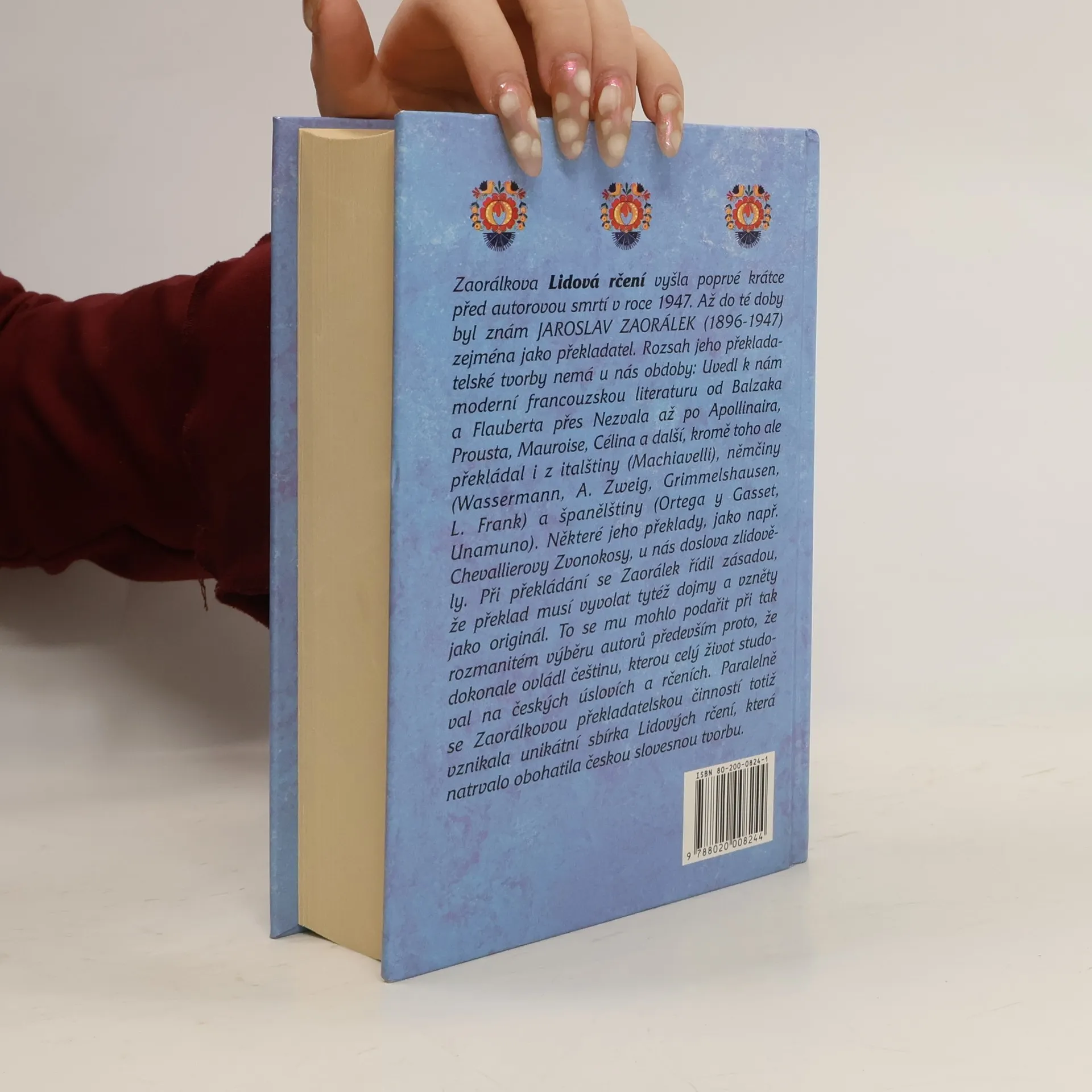 Zaorálkova Lidová rčení byla poprvé vydána těsně před autorovou smrtí v roce 1947. Jaroslav Zaorálek (1896-1947) byl do té doby znám především jako překladatel, jehož rozsáhlá činnost nemá v české literatuře obdoby. Přivedl k nám moderní francouzskou literaturu, včetně autorů jako Balzak, Flaubert, Proust a Apollinaire, a překládal také z italštiny, němčiny a španělštiny. Jeho překlady, například Chevallierovy Zvonokosy, se staly populárními. Zaorálek se při překládání řídil zásadou, že překlad musí vyvolat stejné dojmy jako originál, což se mu díky jeho mistrovství v češtině podařilo. Kromě překladatelské činnosti vytvořil unikátní sbírku Lidových rčení, která obohatila českou literární tradici. Lidová rčení byla dosud vydána třikrát – poprvé v roce 1947, podruhé v roce 1963 a potřetí v roce 1996, kdy se oslavovalo 100. výročí Zaorálkova narození. Čtvrté vydání, které je rovněž reprintem prvního vydání, opět přináší jeho cenný příspěvek české kultuře.
